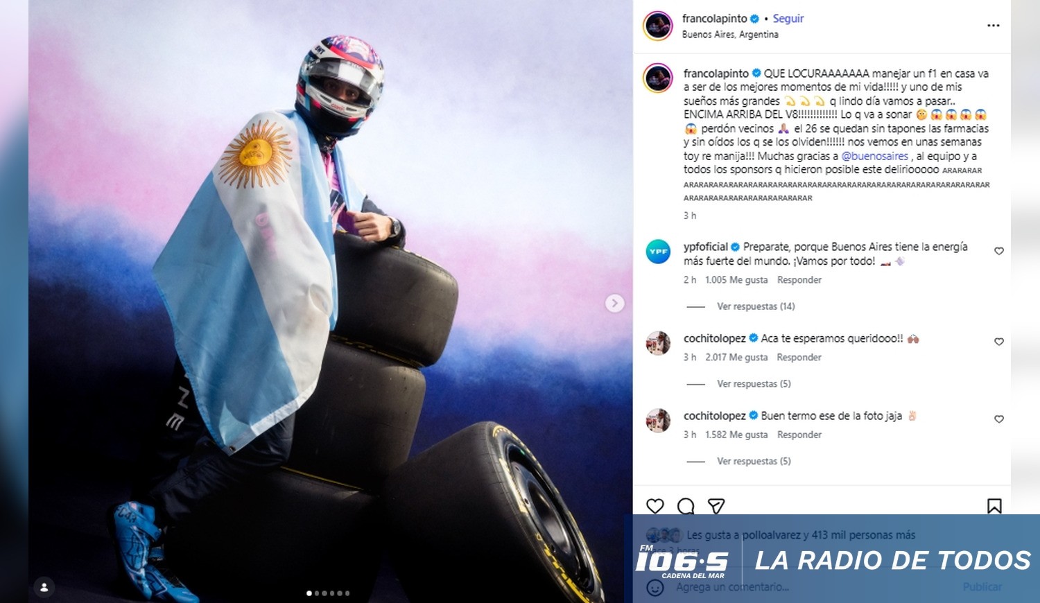 Buenos Aires: Franco Colapinto protagonizará una exhibición de Fórmula 1 en la zona de Palermo.