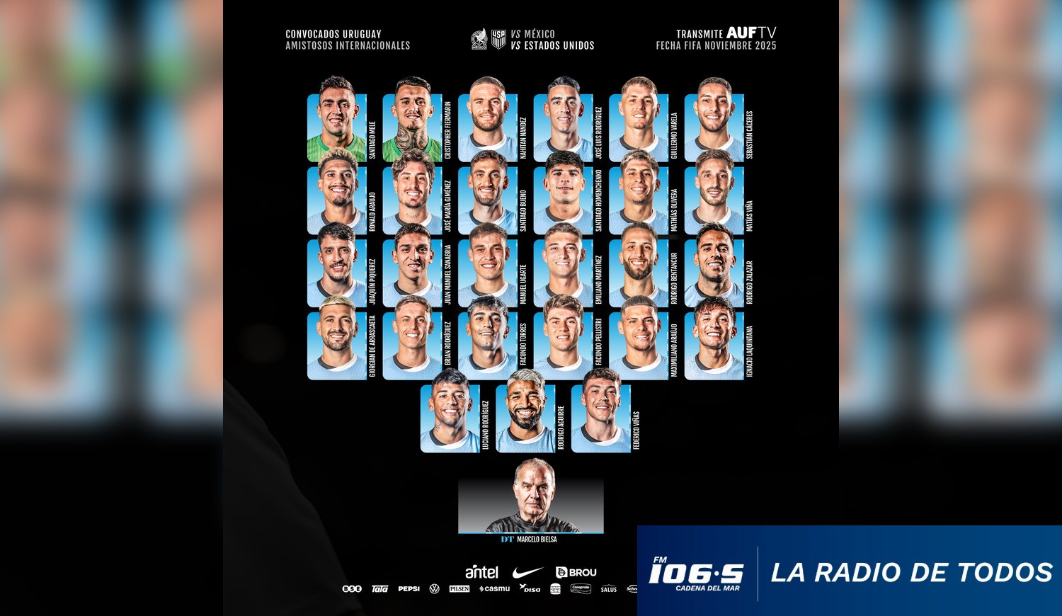 La Asociación Uruguaya de Fútbol (AUF) hizo pública la lista de 27 futbolistas convocados por el director técnico Marcelo Bielsa para los próximos partidos amistosos de la selección uruguaya, a disputarse en la última fecha FIFA del año.