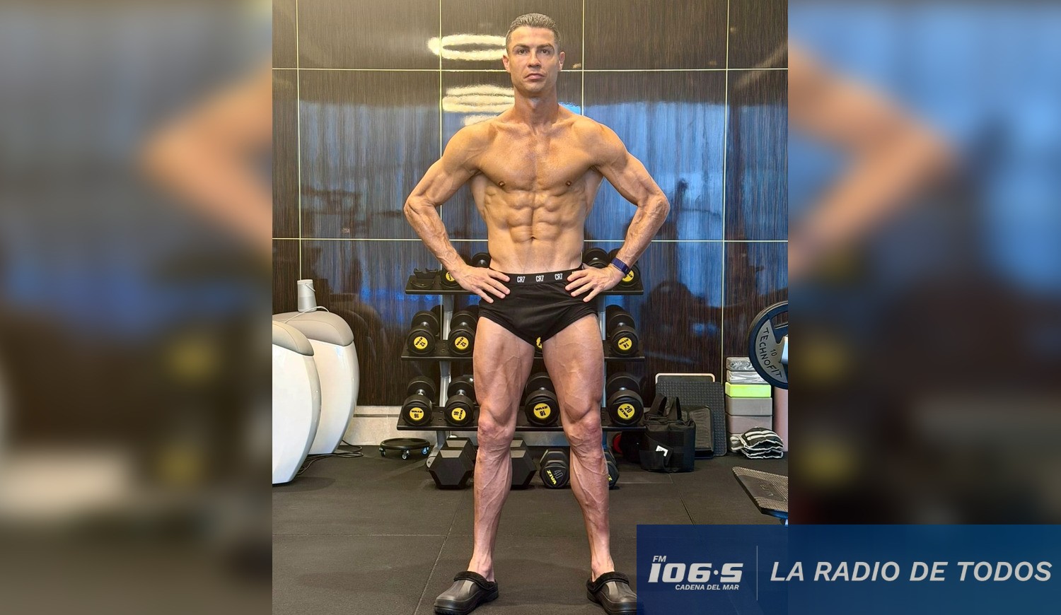 La imagen, capturada tras una sesión de entrenamiento y sauna, causó gran repercusión entre seguidores y medios de todo el mundo por la marcada definición corporal que exhibe el delantero portugués, actualmente en el Al-Nassr de Arabia Saudita y capitán de la Selección de Portugal.