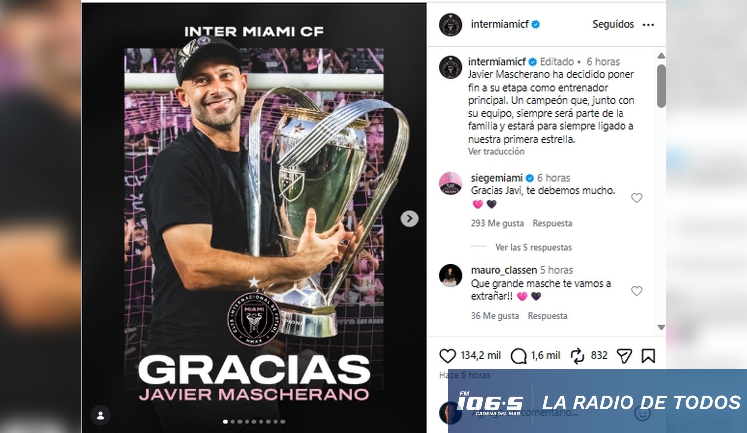 Javier Mascherano comunicó oficialmente este martes su decisión de abandonar la conducción técnica del Inter Miami, cerrando un ciclo marcado por el éxito deportivo en los Estados Unidos.
