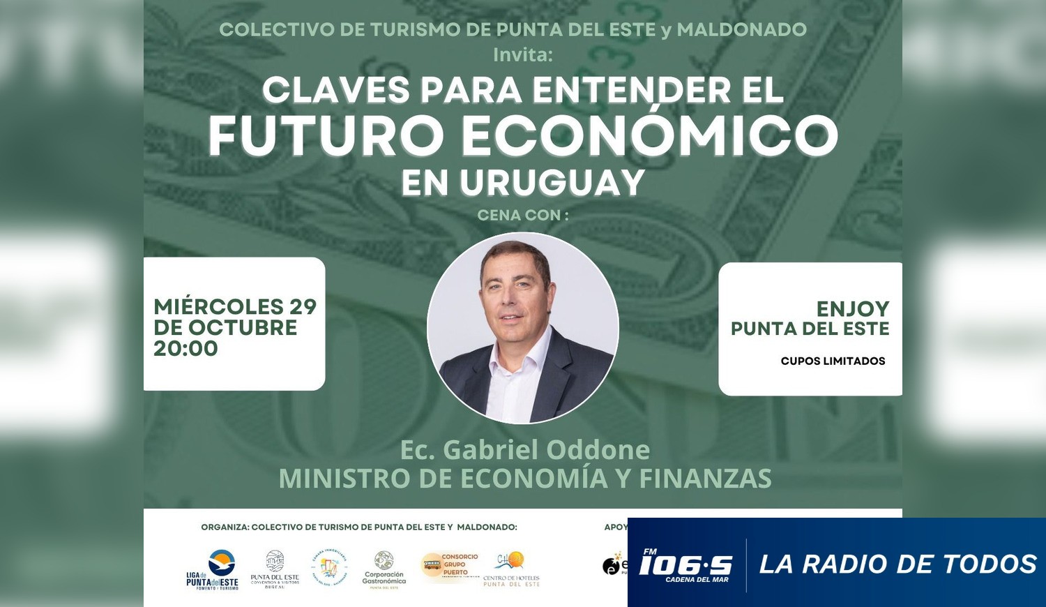 La Liga de Fomento de Turismo de Punta del Este, junto a los principales sectores económico-gremiales del departamento, organiza el miércoles 29 de octubre una cena con el Ministro de Economía, Gabriel Oddone. El objetivo es obtener una visión clara del futuro financiero y transmitir las inquietudes del sector privado. El evento lleva por nombre "Claves para entender el futuro económico en Uruguay".