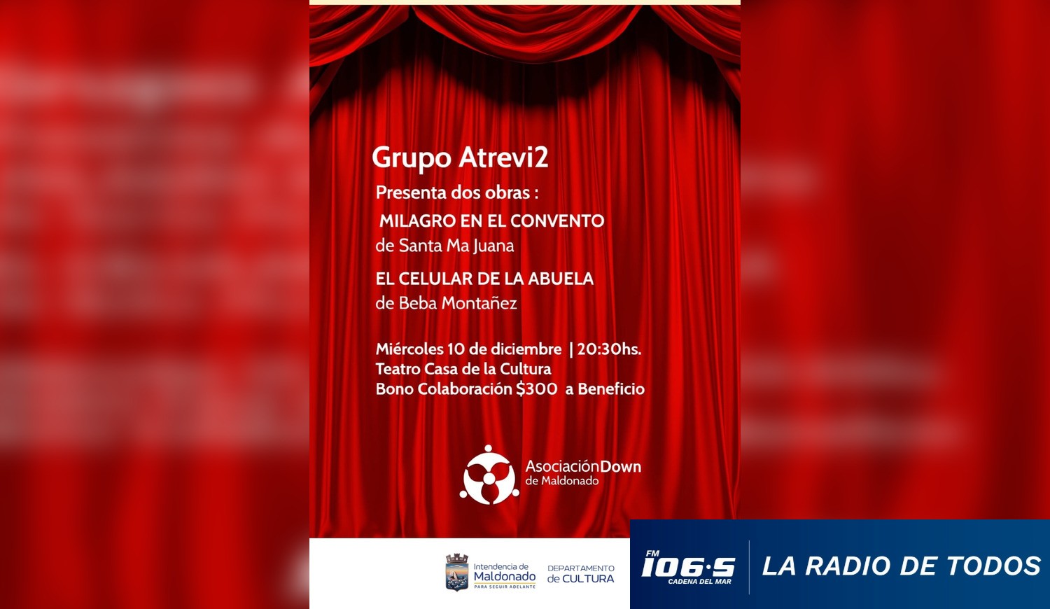 El grupo teatral Atrevi2 subirá a escena para presentar dos de sus obras este miércoles en el Teatro de la Casa de la Cultura de la capital departamental. La iniciativa, organizada por la Asociación Down de Maldonado, invita al público a disfrutar del talento de sus integrantes y a apoyar la labor de la institución.