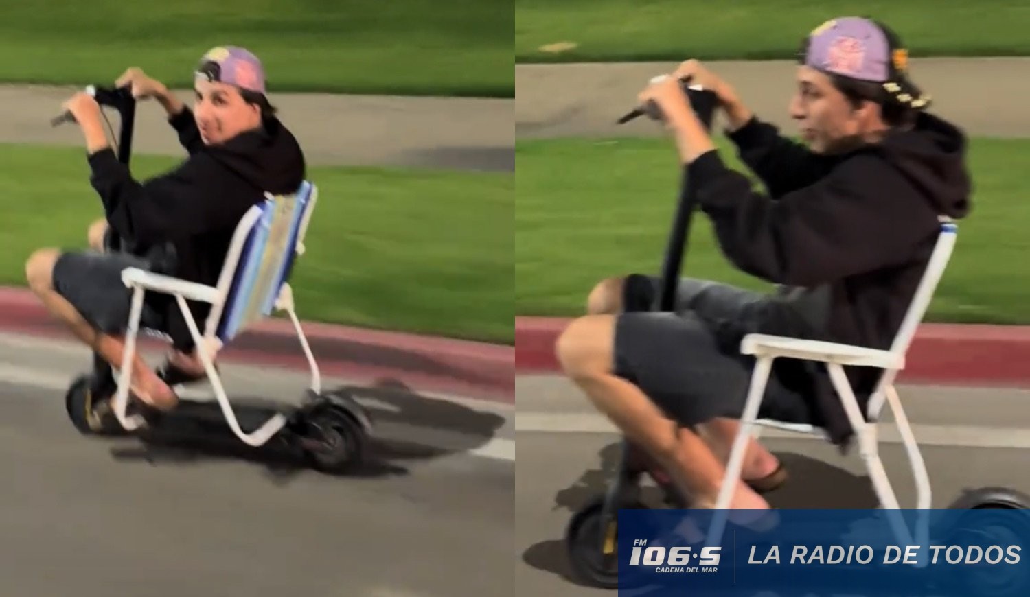 Un joven fue registrado circulando por la Rambla Dr. Claudio Williman, a la altura de la parada 3 de la Playa Mansa, utilizando un monopatín eléctrico con una silla playera incorporada. El video se viralizó en redes sociales y generó una ola de reacciones por su particular método de transporte.