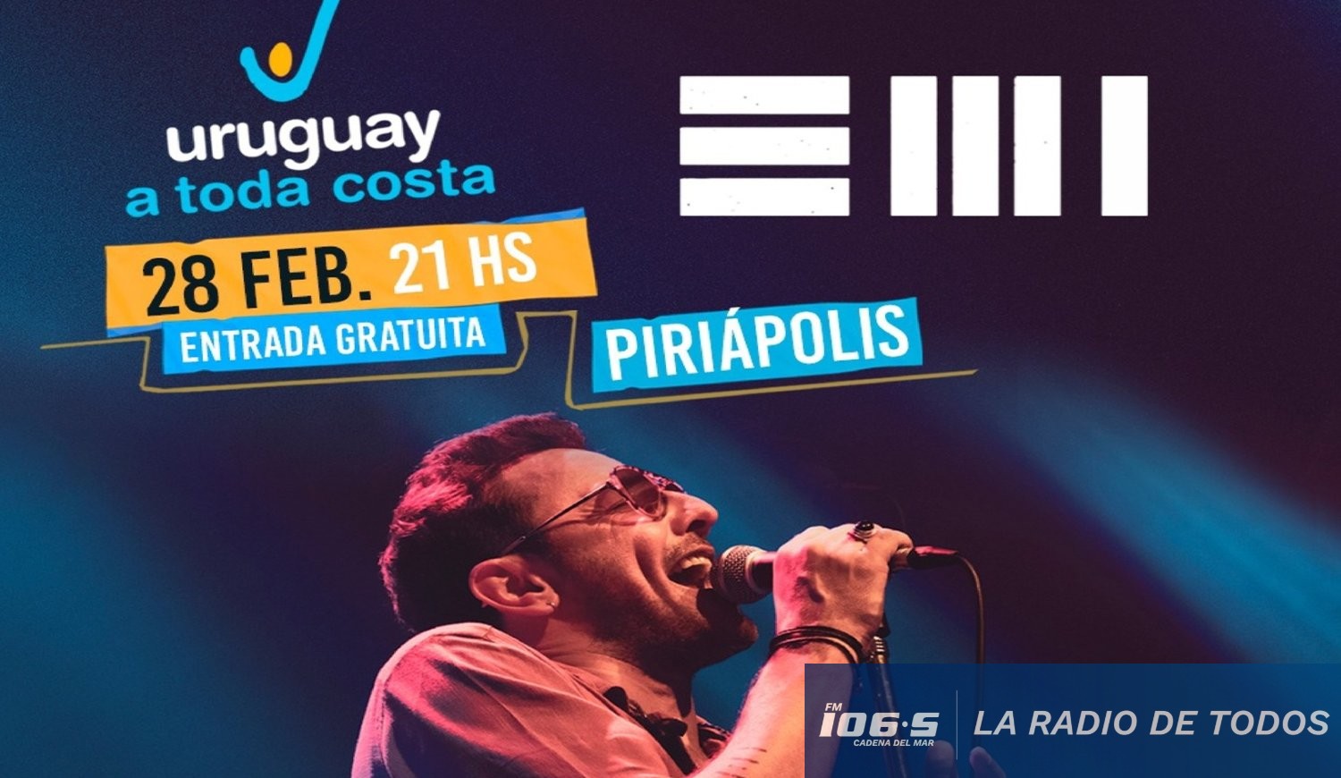Este sábado 28 de febrero, el músico y compositor Emiliano Brancciari se presentará en Piriápolis bajo su proyecto artístico denominado EMI, una faceta que explora sonoridades más personales y directas.