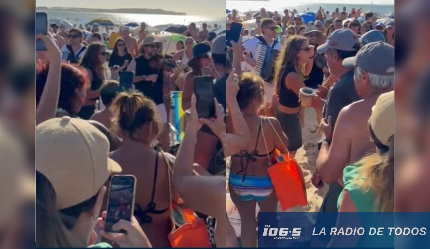 Lo que comenzó como una intervención acústica espontánea derivó rápidamente en un evento masivo, donde el sonido del violín y el acordeón logró que cientos de turistas abandonaran sus reposeras para sumarse a un gran coro colectivo frente al mar.