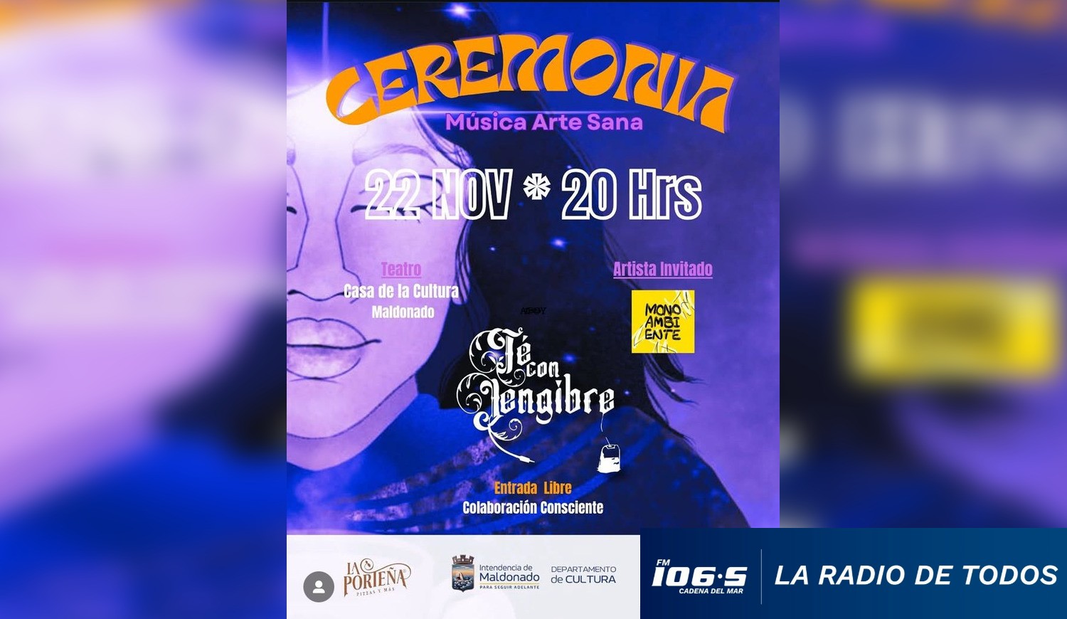 El dúo musical de Maldonado conocido como 'Te con Jengibre', visitó este viernes los estudios de Cadena del Mar para invitar al lanzamiento de su primera canción grabada profesionalmente. "CEREMONIA" es el nombre del evento, y tendrá lugar mañana sábado 21 de noviembre a las 20.00 horas en la Casa de la Cultura, con entrada libre.