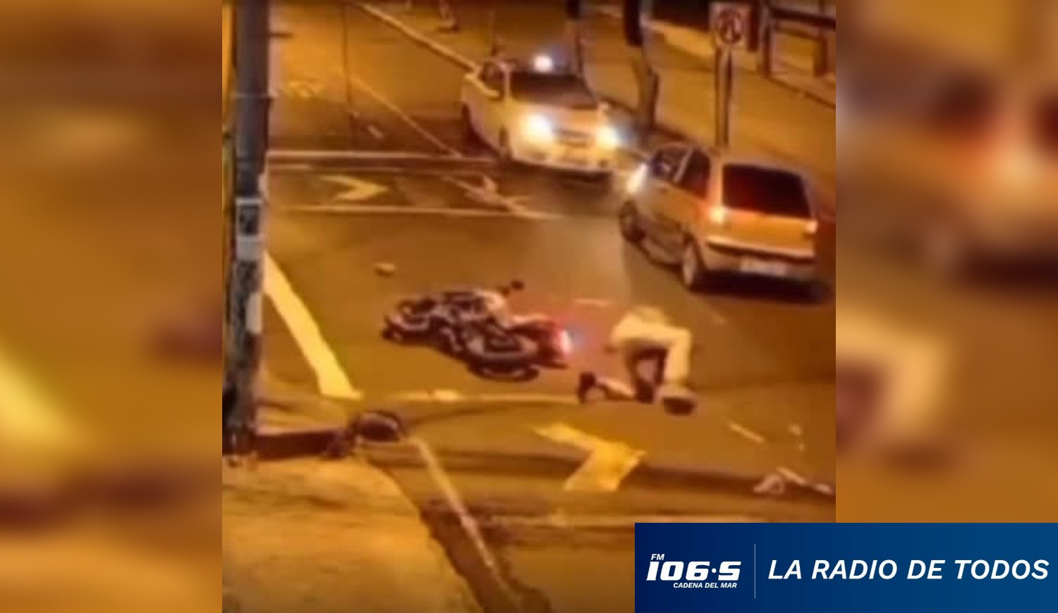 El conductor de la moto, al pasar el rojo, impacta la parte trasera del auto, lanzando a la pareja al pavimento.