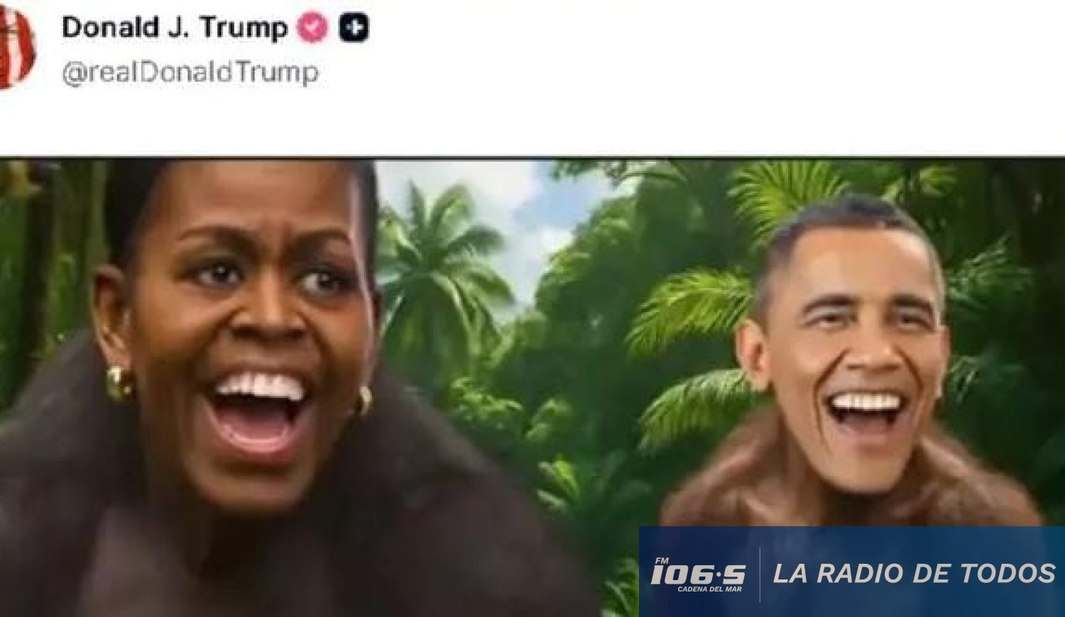 El Presidente de Estados Unidos, Donald Trump, se vio envuelto en una nueva controversia tras compartir en su red social, Truth Social, un video de 62 segundos que incluía caricaturas ofensivas del exmandatario Barack Obama y su esposa.