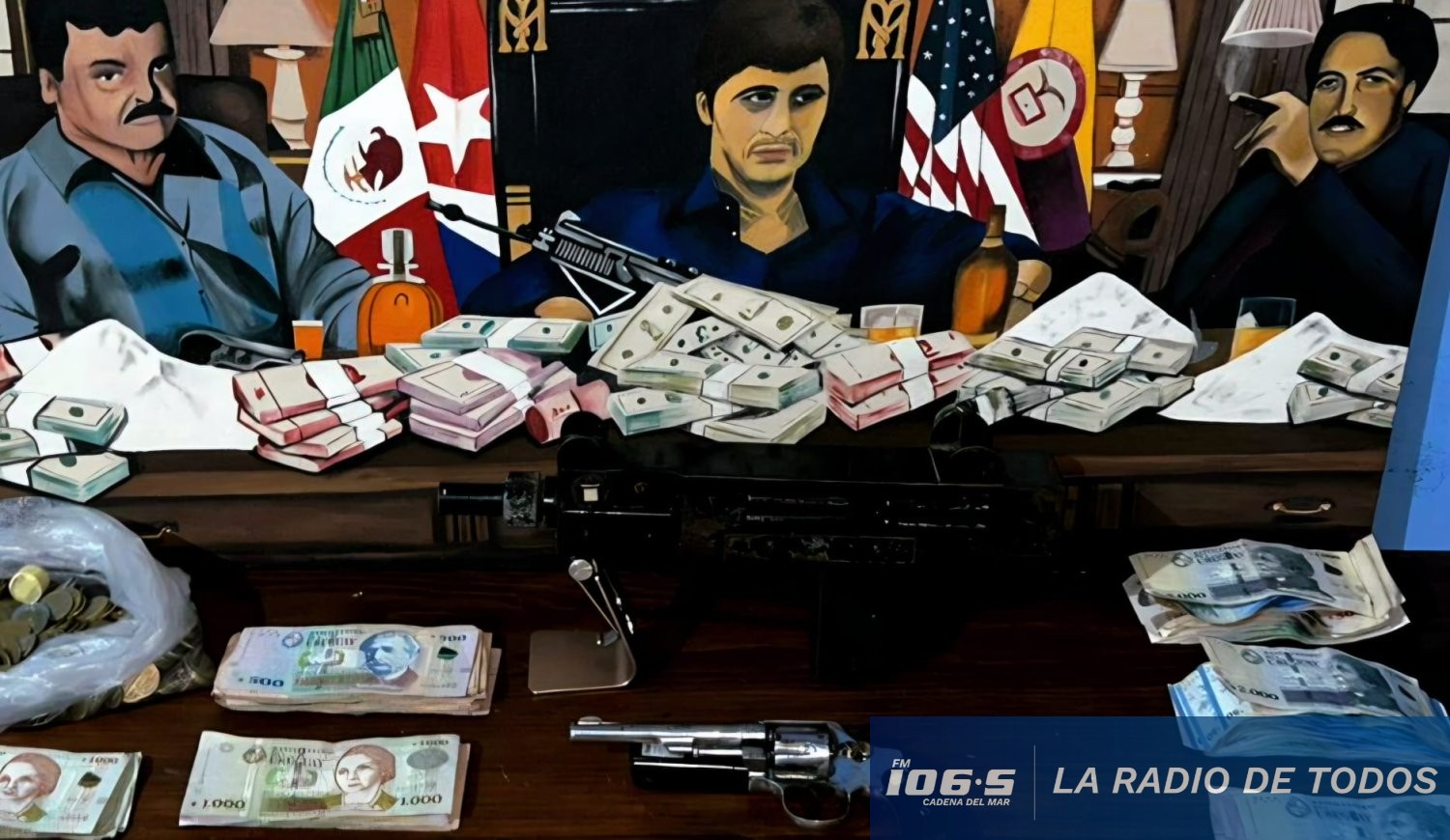 En la escena también se observaban representaciones de cocaína, fajos de dinero y un fusil de asalto, elementos que reforzarían la hipótesis investigativa sobre la actividad ilícita desarrollada en el lugar.
