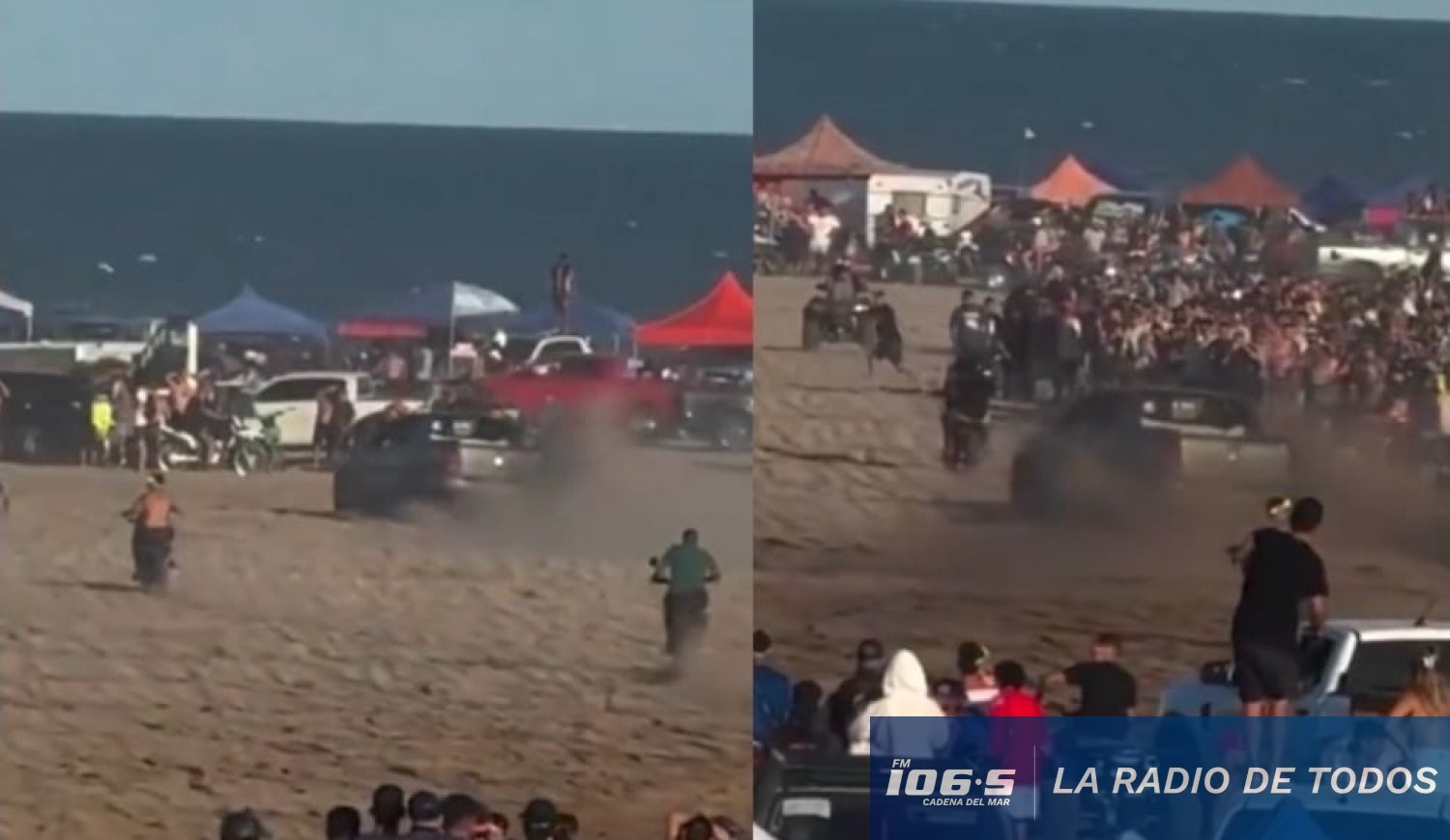 El hecho ocurrió durante el fin de semana cuando el hombre, identificado como un joven de 24 años con las iniciales A. F. P., se metió con la camioneta en la pista donde competían motos y realizó maniobras a alta velocidad, zigzagueando entre otros vehículos y poniendo en riesgo no solo a los pilotos, sino también a los miles de asistentes que participan o miran el evento deportivo en la playa.