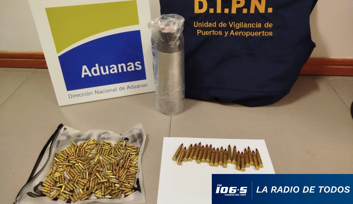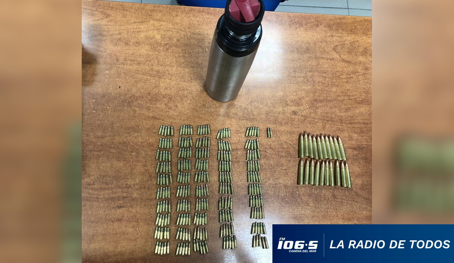Dentro de un termo, los funcionarios hallaron un total de 272 cartuchos: 252 de calibre .22 y 20 de calibre .35. Además, se procedió a la incautación del termo y un teléfono celular.