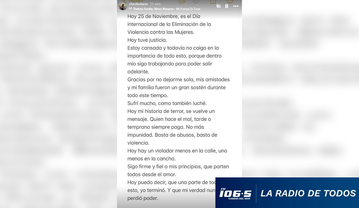 "Hoy hay un violador menos en la calle, uno menos en la cancha. Hoy puedo decir, que una parte de todo esto, ya terminó. Y que mi verdad nunca perdió poder," concluyó.