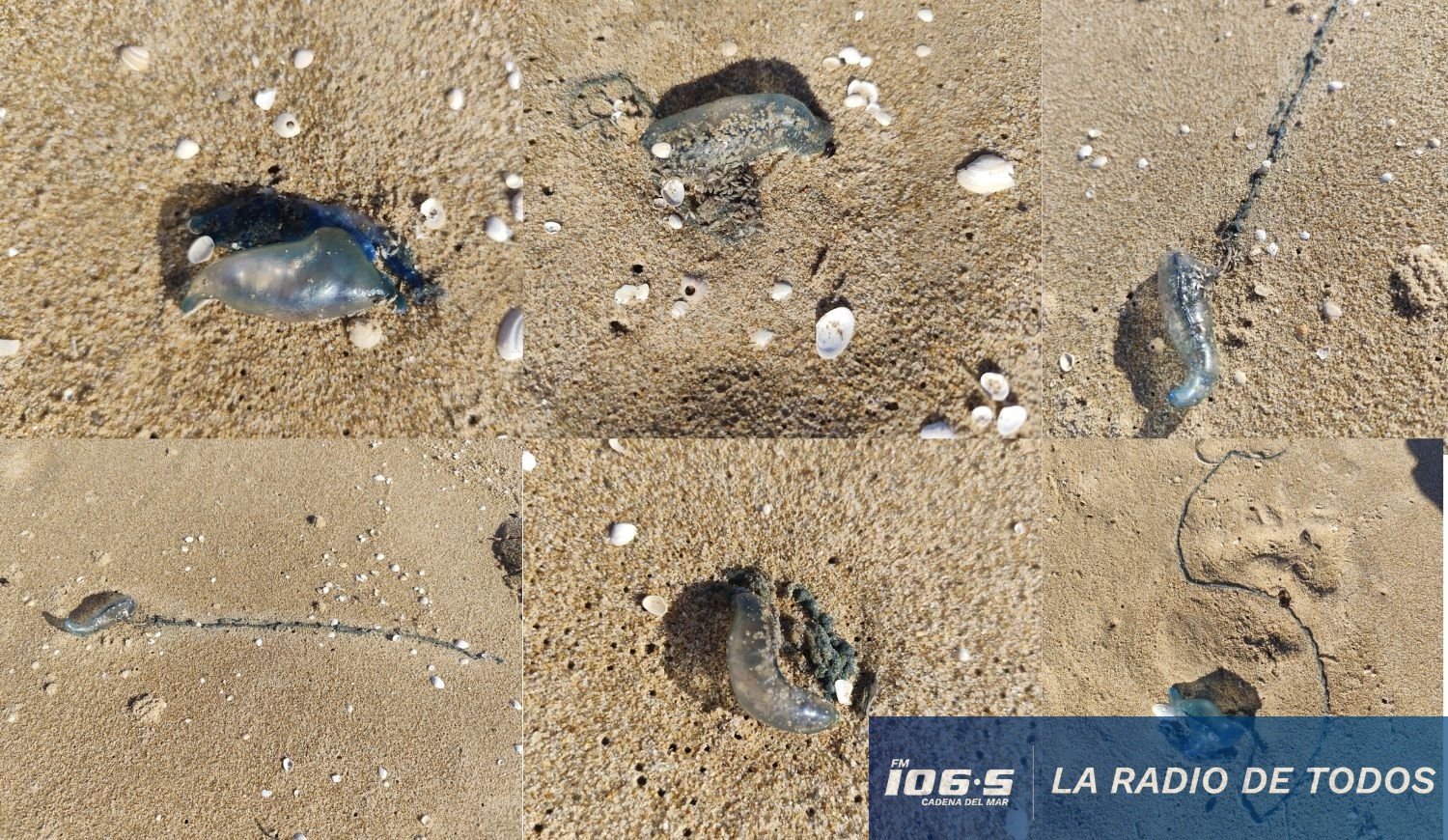 Las imágenes enviadas por los oyentes muestran claramente los característicos tonos azul-violáceos de sus velas y la disposición de los tentáculos en la arena húmeda, lo que ha generado preocupación entre los residentes y turistas que frecuentan la zona.