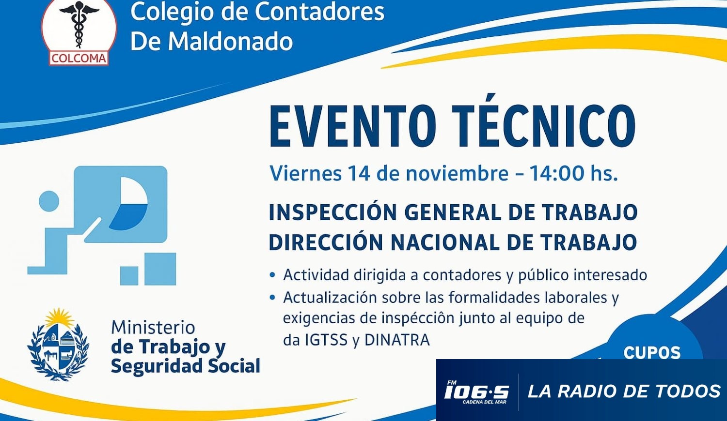 El Colegio de Contadores de Maldonado confirmó la realización de un evento técnico destinado a profesionales del área contable y a todas las personas interesadas en actualizarse sobre normativa laboral e inspecciones.