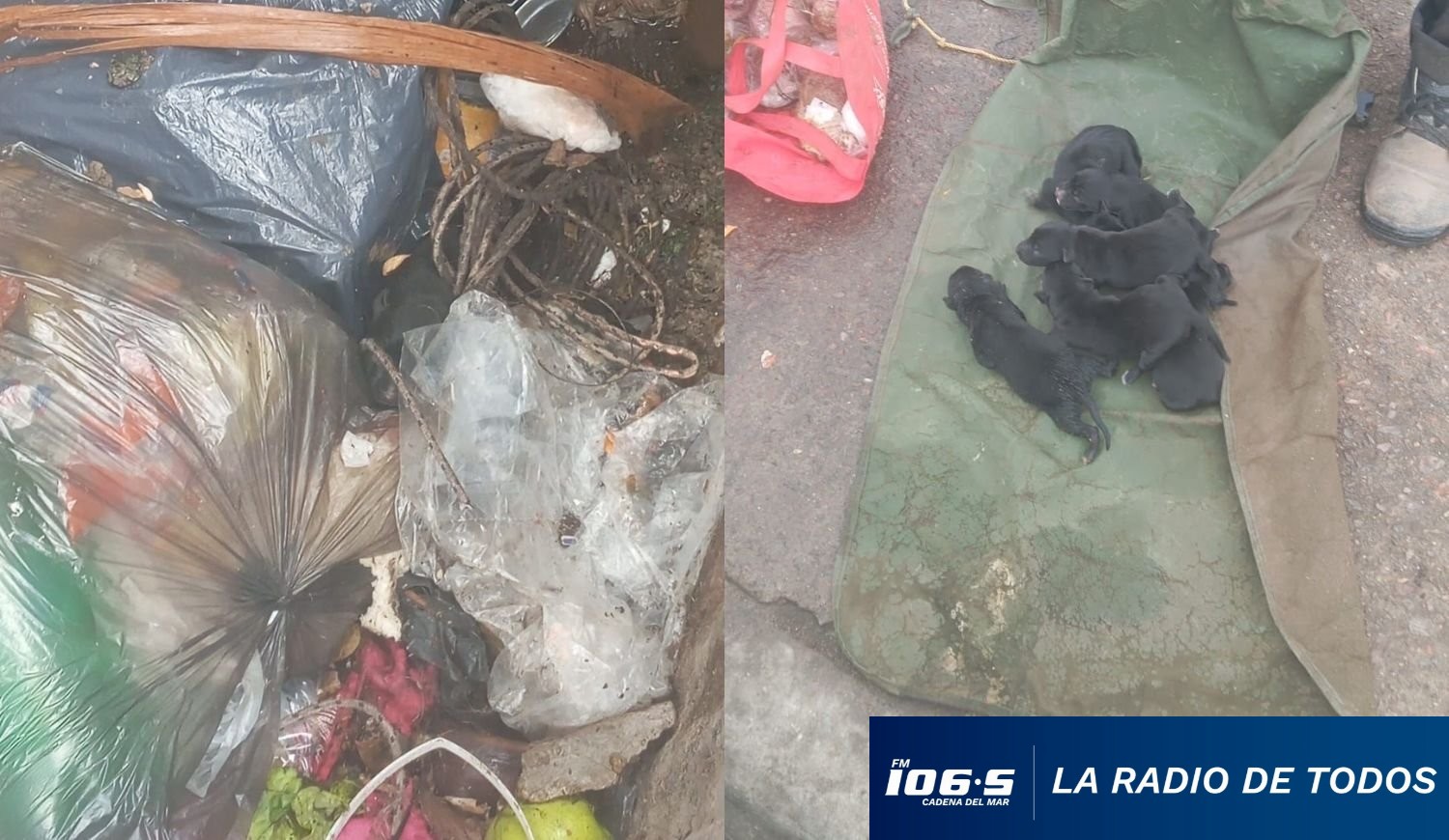 Crueldad animal (Maldonado): arrojaron ocho cachorros recién nacidos dentro de una bolsa al contenedor de basura.