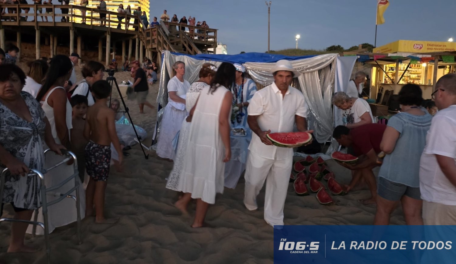 A lo largo de la tardecita y noche de hoy lunes 2 de febrero, Cadena del Mar acompañó cada expresión de fe: los rezos colectivos e individuales, las caminatas descalzas por la orilla como acto de purificación, los cantos tradicionales y los instantes de profundo silencio frente al horizonte.