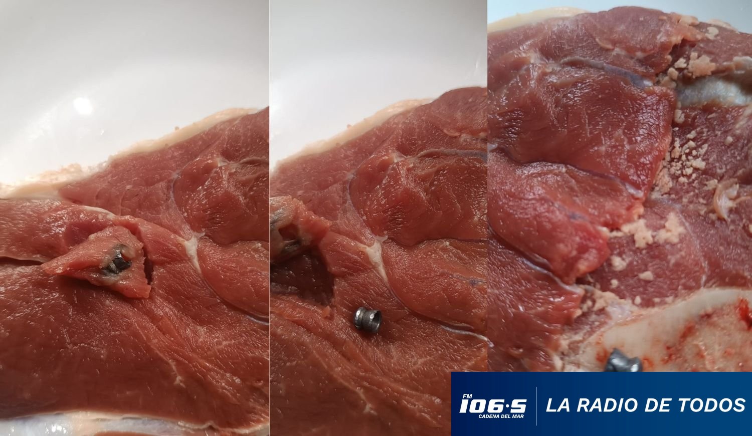 "Compré está carne, en una carnicería de la zona de Lussich en Maldonado. Al llegar a casa, me encuentro que tiene dos chumbos", expresó el denunciante a Cadena del Mar.