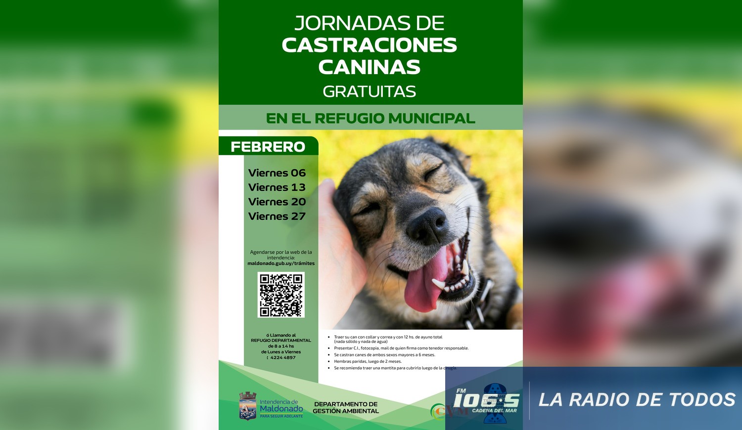 La Intendencia de Maldonado confirmó la extensión del servicio gratuito de castraciones durante todos los viernes del mes de febrero. Las jornadas se llevarán a cabo en las instalaciones del refugio municipal ubicado en la zona de Canteras de Marelli.