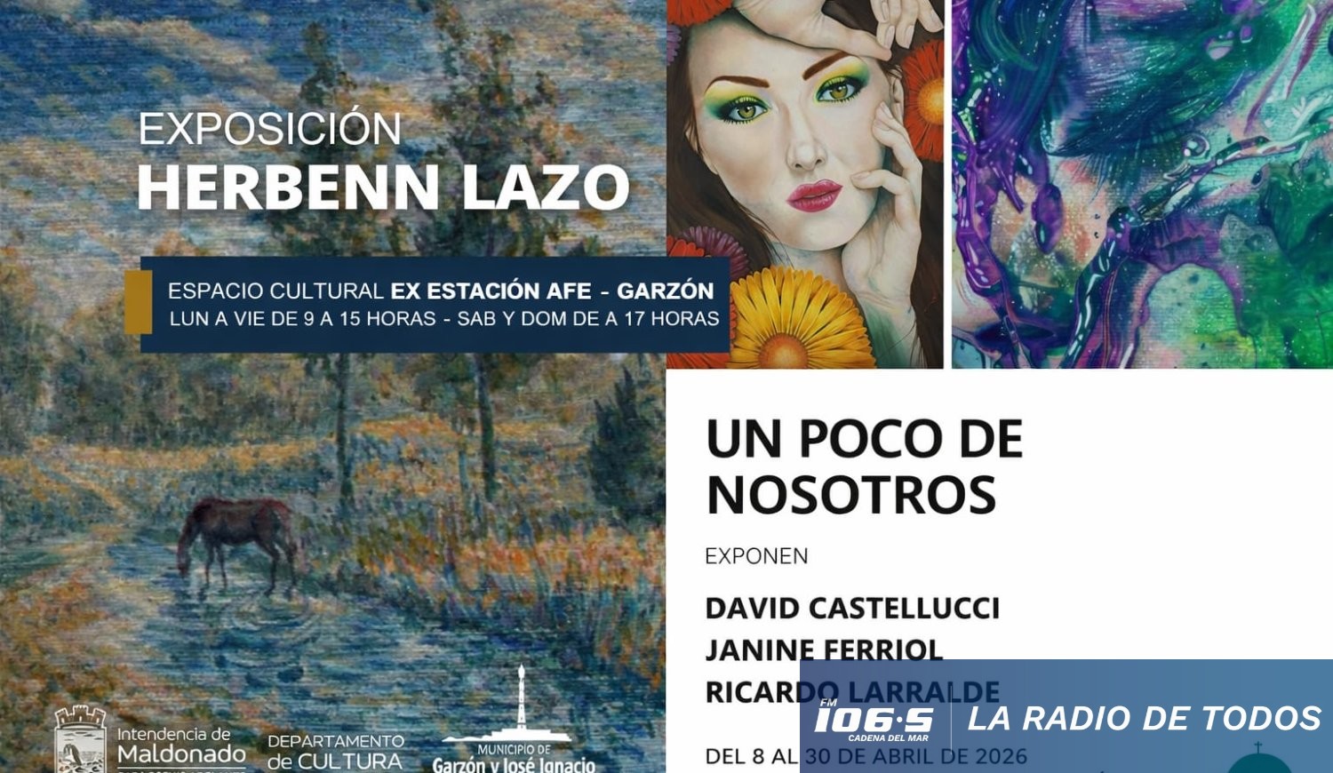 Los gobiernos locales fomentan la circulación de creadores locales y nacionales a través de muestras itinerantes que permanecerán habilitadas durante abril. Las exposiciones de pintura y escultura estarán disponibles con acceso gratuito en los Municipios de Garzón y Pan de Azúcar.