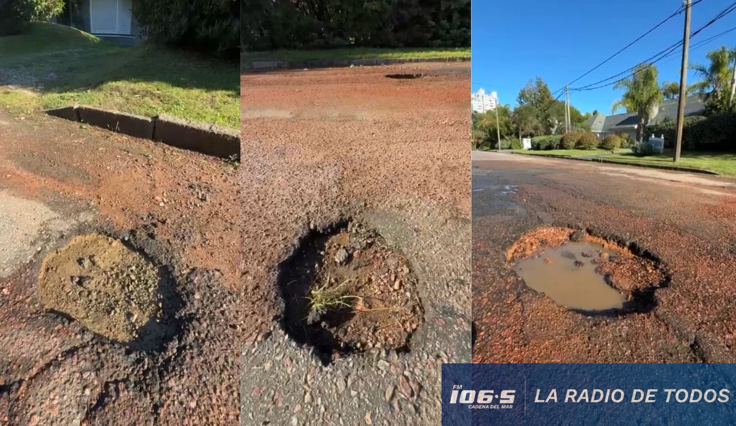 Vecinos y automovilistas de nuestro principal balneario enviaron registros fílmicos a Cadena del Mar exponiendo al menos cinco baches de gran magnitud entre la Avenida Javier de Viana y Avenida Francia.