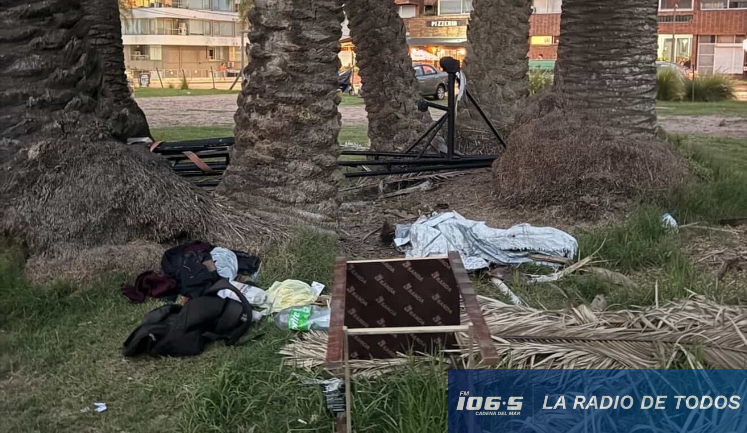 En el lugar se observa acumulación de residuos, restos de poda, objetos abandonados y presencia de personas durmiendo, en una zona caracterizada por su alta circulación turística.