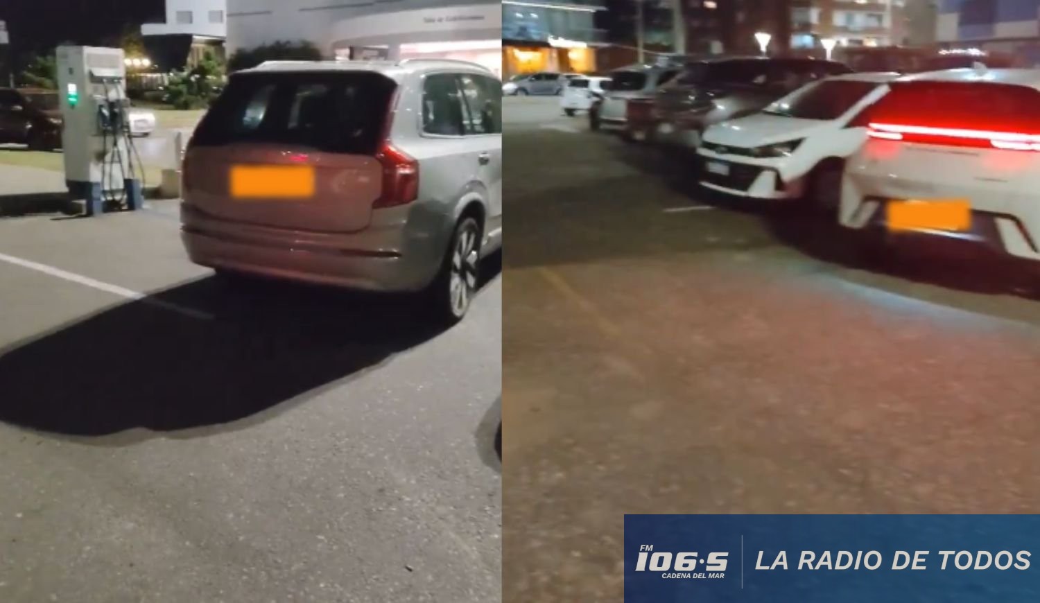 En las imágenes se observa cómo una estación de carga con tres conectores disponibles se encuentra totalmente bloqueada por camionetas y autos a combustión ("nafteros").