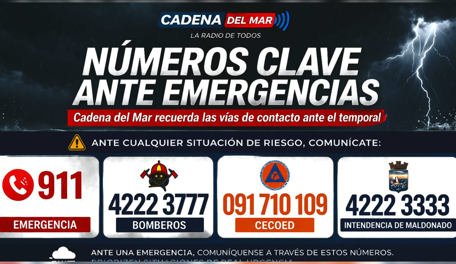 Ante las consecuencias generadas por el ciclón extratropical en todo Maldonado, desde Cadena del Mar se reitera a la población la importancia de contar con los contactos telefónicos de emergencia disponibles para actuar con celeridad frente a cualquier situación de riesgo.