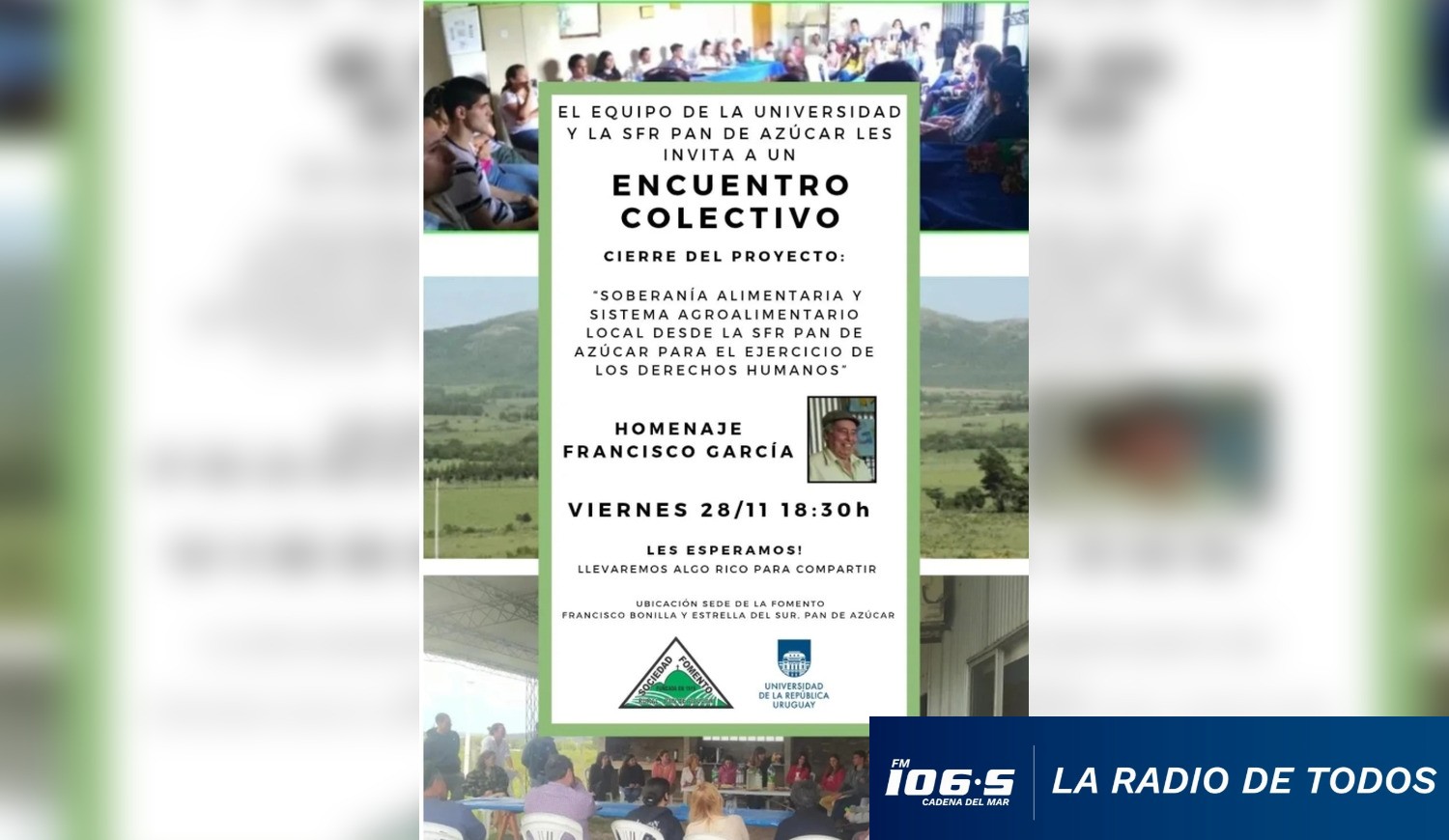 Según informó nuestra corresponsal Mara Princesa Arévalo, la Sociedad de Fomento Rural de Pan de Azúcar, dará a conocer los resultados del importante proyecto “Soberanía alimentaria y sistema agroalimentario local desde la SFR Pan de Azúcar para el ejercicio de los derechos humanos”, desarrollado en colaboración con la Universidad de la República (UDELAR).