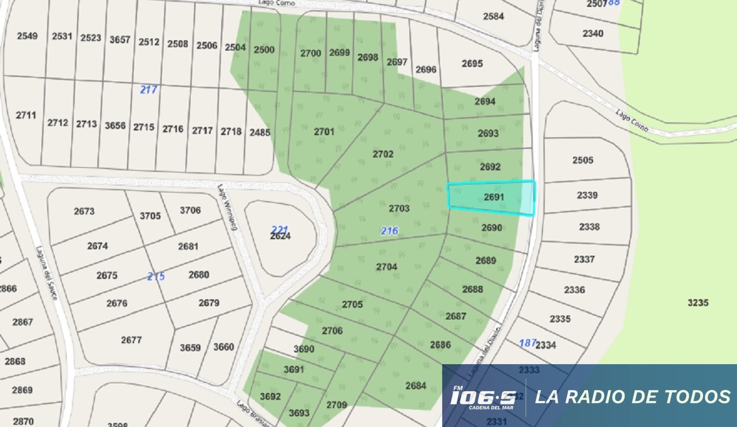 El bien que saldrá a remate es un solar de terreno baldío emplazado en zona urbana de la localidad catastral Punta Ballena, identificado como padrón 2691 —número 9 de la manzana G2 según plano de mensura de 1979—, con una superficie de 1.586 metros con 87 decímetros cuadrados.