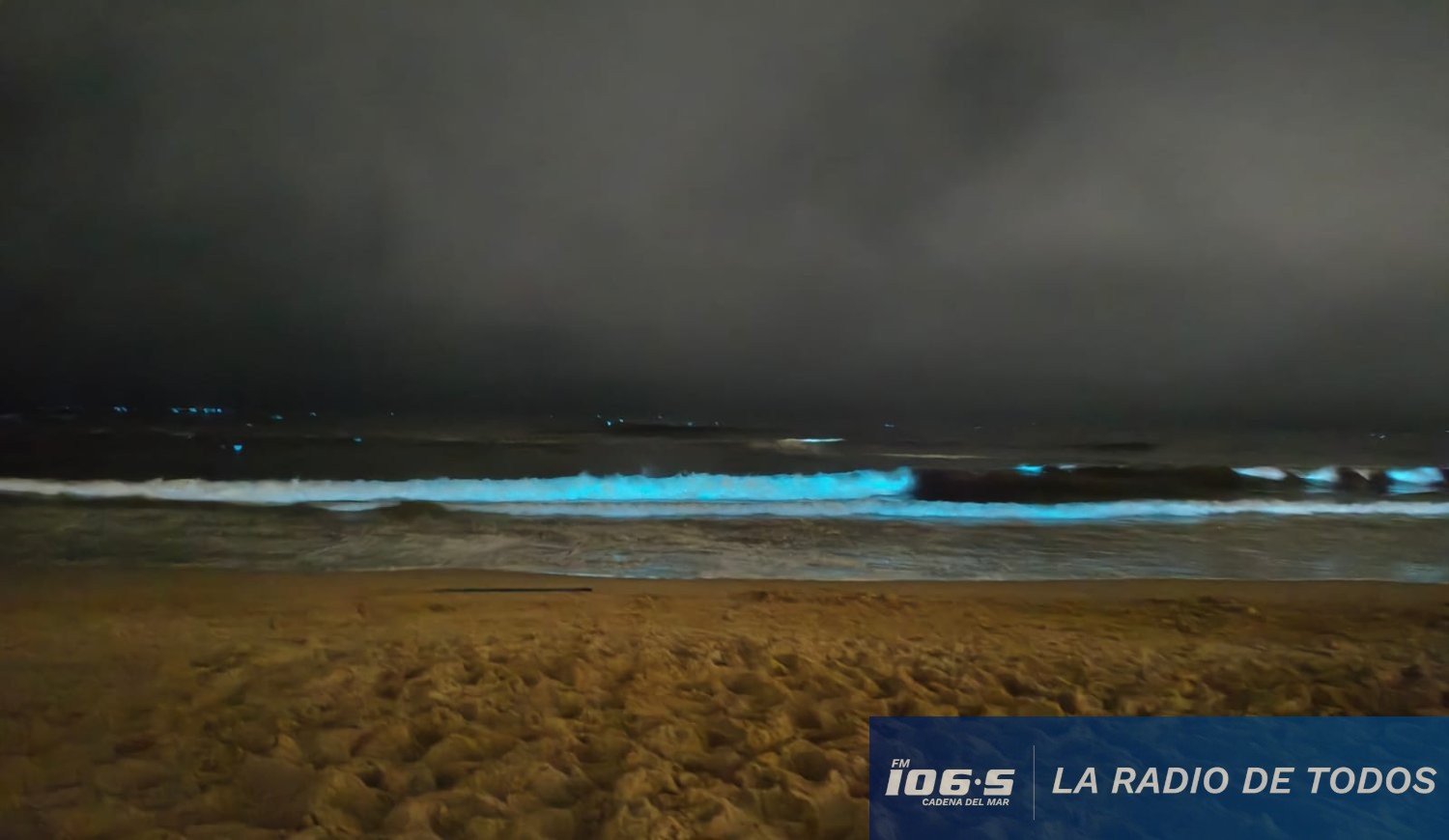 La gran concentración de microorganismos en el agua genera destellos luminosos visibles desde la orilla, una postal que despierta asombro, curiosidad y gran interés entre turistas y vecinos que disfrutan del principal balneario del país en estos días.