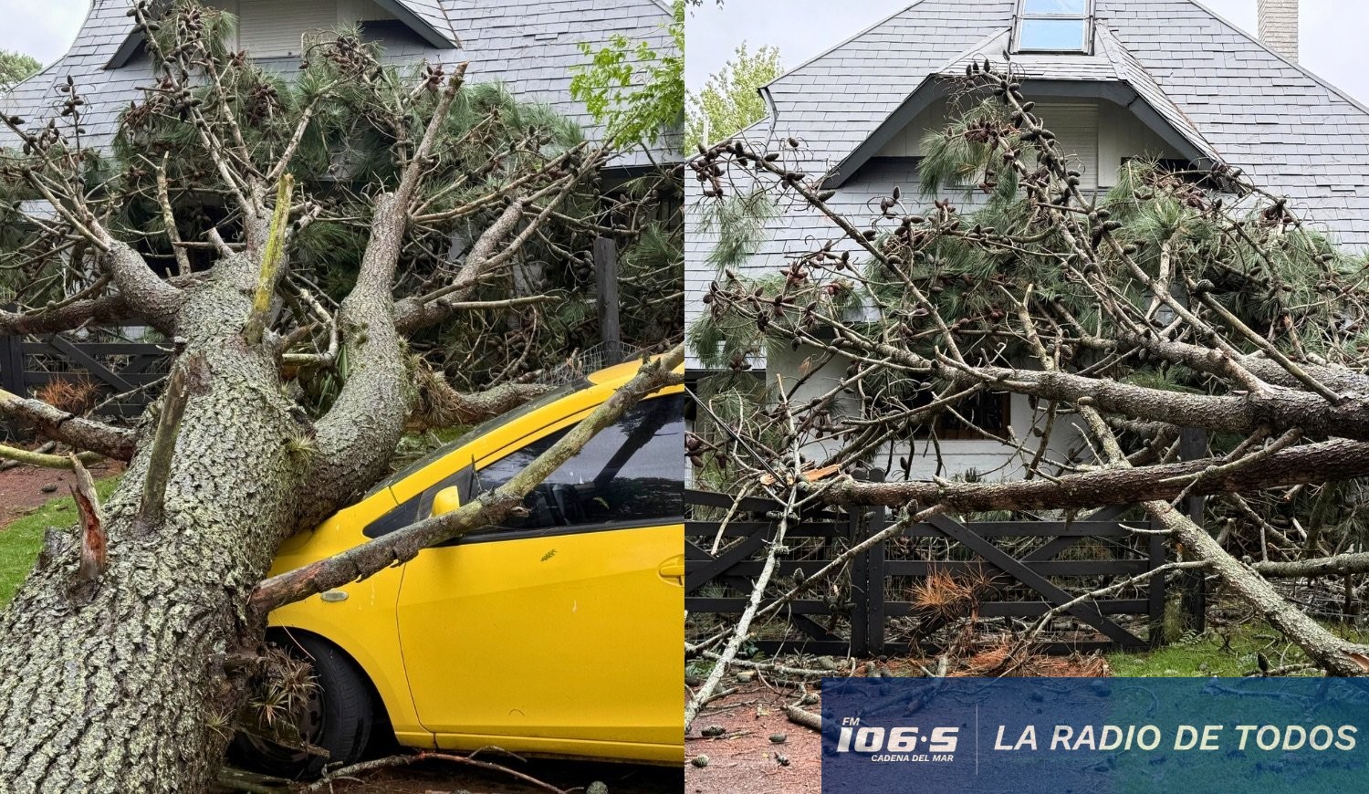 Un vecino, oyente de Cadena del Mar, describió el momento del incidente: “Salimos enseguida y el árbol ya estaba arriba del auto y tapando todo el ingreso. Pasó en segundos”.