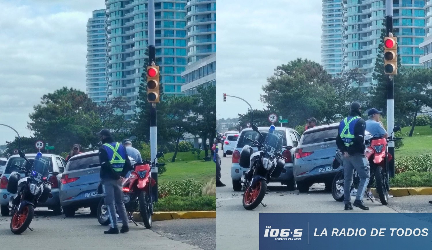 Un siniestro de tránsito se registró este domingo 5 de abril, próximo a las 12:30 horas, en la ciudad de Punta del Este, a la altura de la Parada 16 de Playa Mansa, donde dos vehículos protagonizaron una colisión en una intersección semaforizada, sin que se reportaran personas lesionadas.