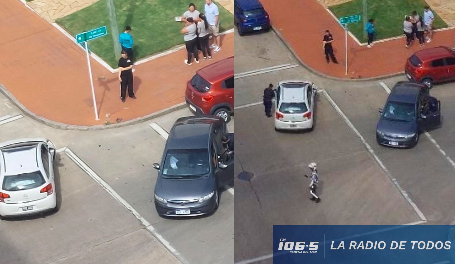 En la escena se observaron dos autos involucrados —uno blanco y otro gris— detenidos en la bocacalle tras la colisión.
