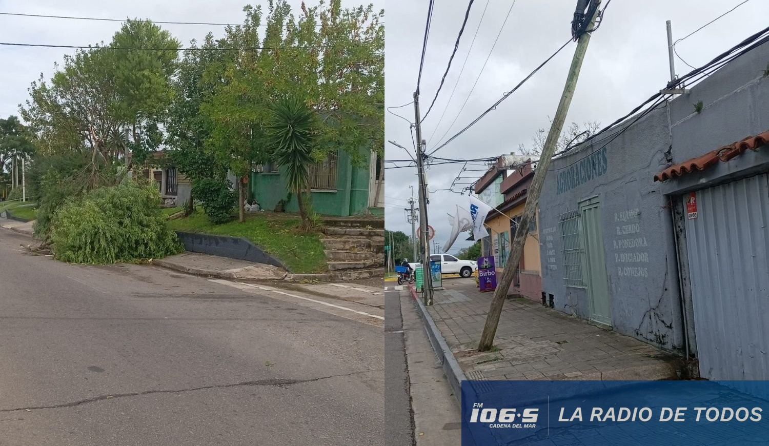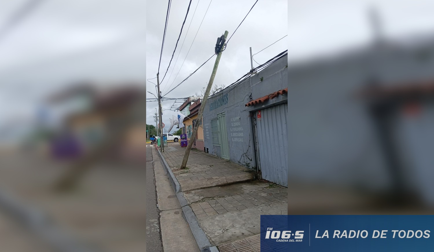 Entre los incidentes más graves, se registró la caída de una columna de UTE que quedó apoyada sobre el techo de una vivienda, generando un riesgo eléctrico latente.
