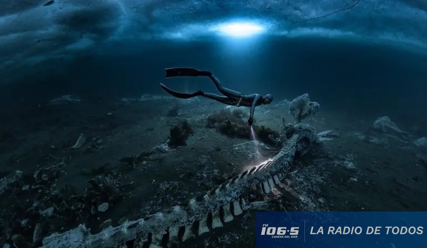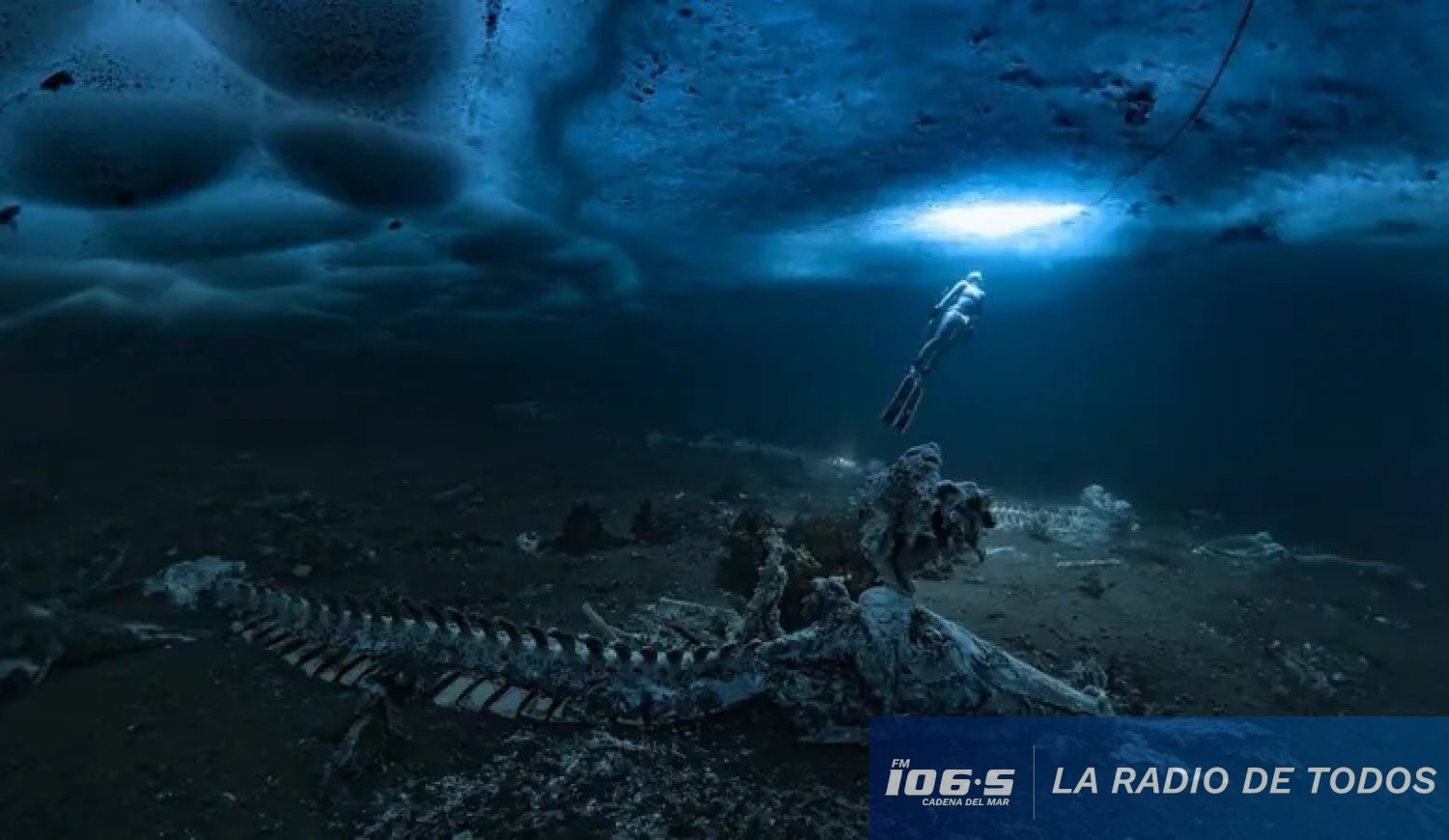 El explorador y fotógrafo submarino Alex Dawson documentó recientemente una fosa común de ballenas minke en las gélidas aguas de Tasiilaq, en el este de Groenlandia, tras sumergirse a través de una perforación en el hielo marino.