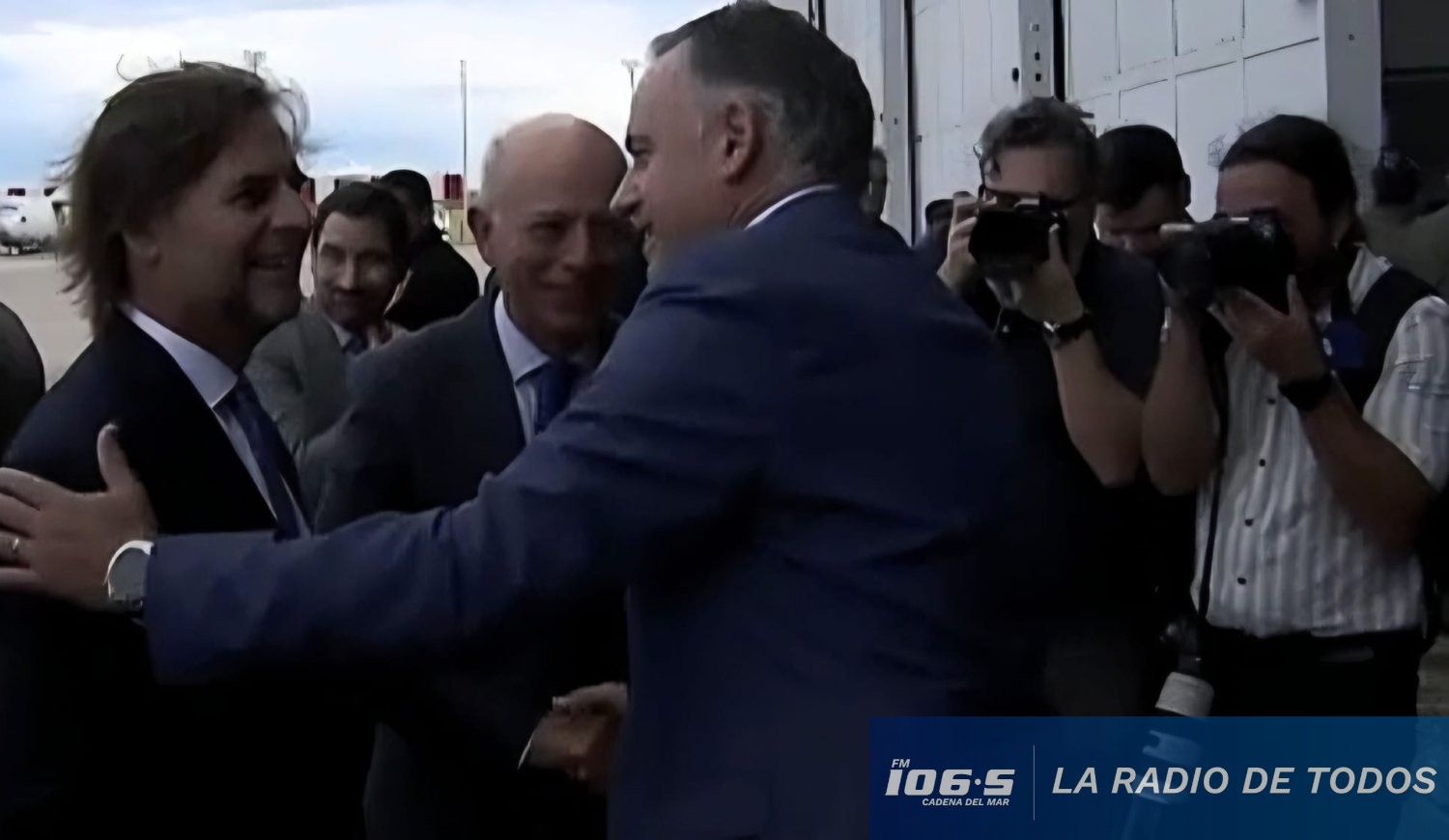 El saludo, acompañado de sonrisas, se produjo en la Base Aérea N° 1, ubicada en la ruta 101, en el departamento de Canelones.