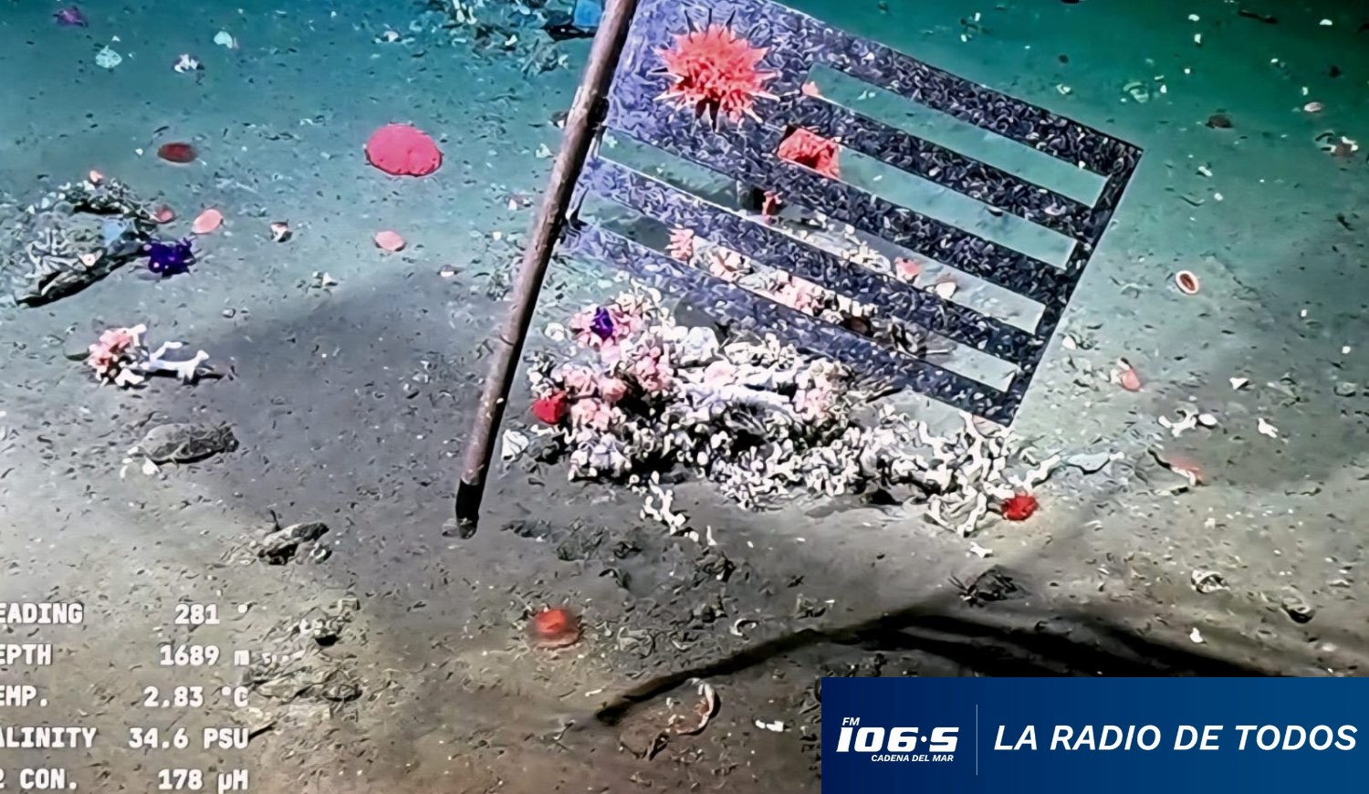 Entre bromas, los investigadores compartieron en la transmisión en vivo el momento, y registraron el símbolo nacional en el lecho marino, aunque luego fue recuperado y regresó al barco, tras la fotografía.