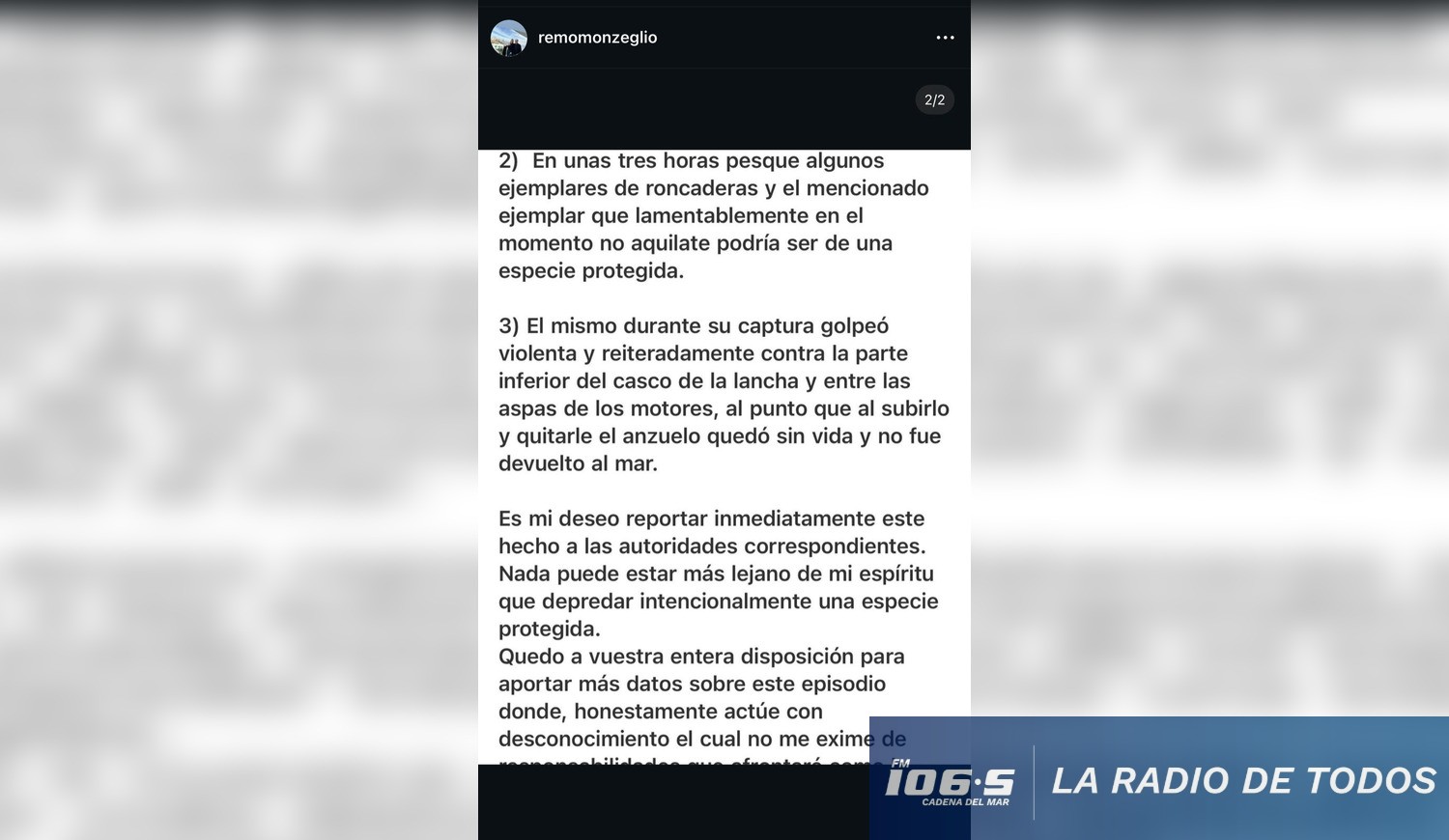 Un episodio vinculado a la actividad recreativa en la costa terminó en una aclaración pública por parte de Remo Monzeglio, exsubsecretario de Turismo, luego de que compartiera imágenes de la captura de un ejemplar de tiburón sarda.