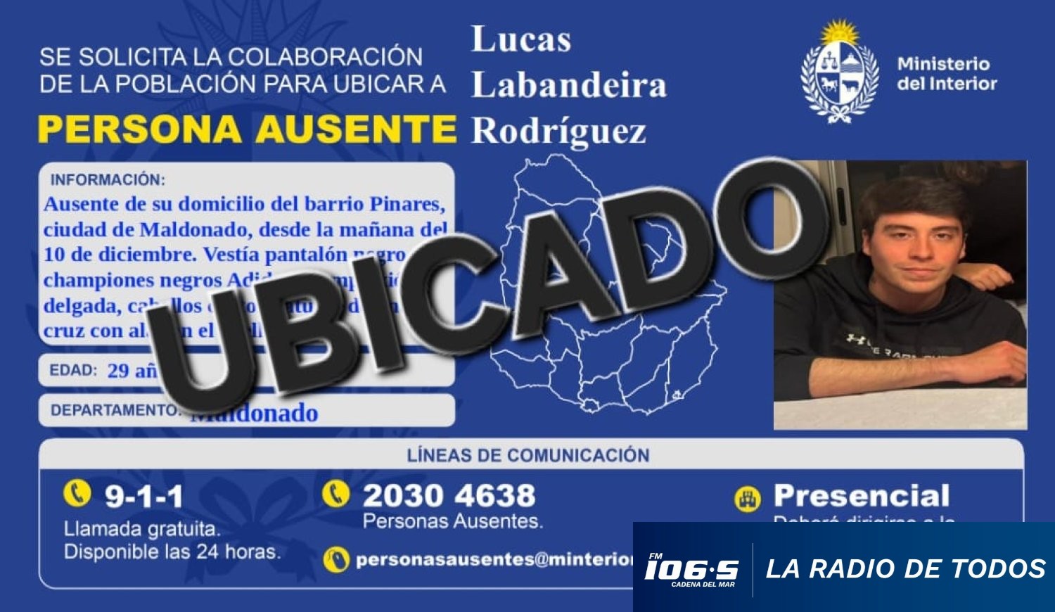 Tras concurrir al lugar, el personal policial constató que efectivamente se trataba de Lucas Labandeira Rodríguez, quien se encontraba en buen estado de salud.