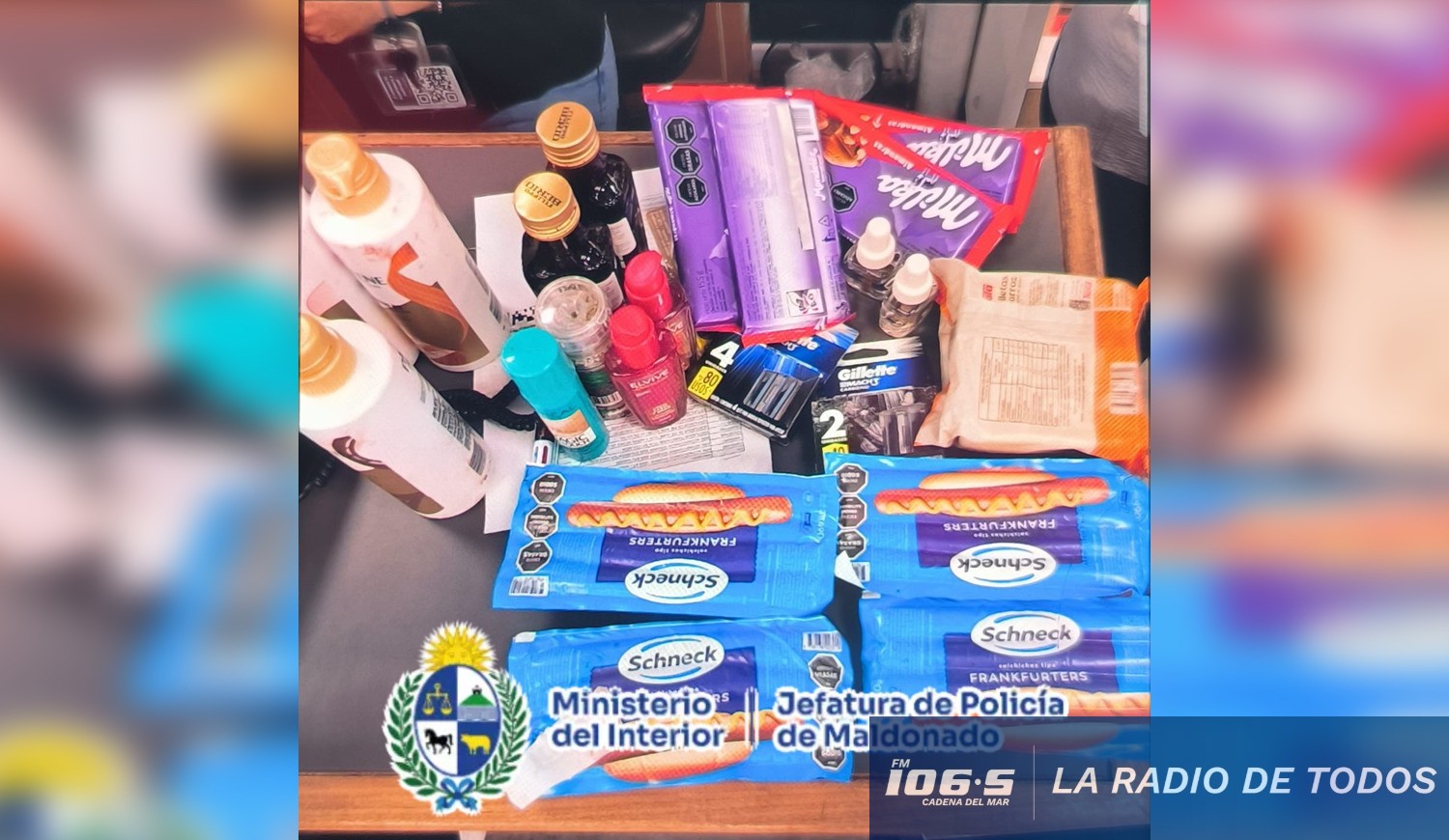 De inmediato, personal de la Unidad de Respuesta Policial Móvil (URPM) de Zona Operacional II acudió al sitio. Allí, el denunciante —empleado del comercio— manifestó que el individuo había introducido múltiples productos en su mochila sin pagarlos, por un monto total de $9.839 pesos uruguayos.