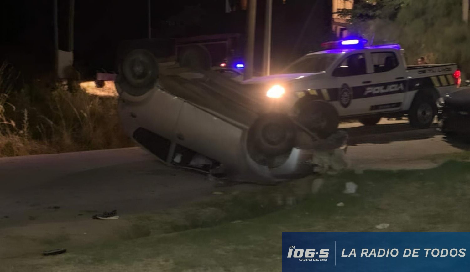 Un siniestro de tránsito con vuelco se registró sobre las 21.25 horas de este martes 30 de diciembre en la intersección de las calles Caballadas y Tiburones, en La Bota (Balneario Buenos Aires).