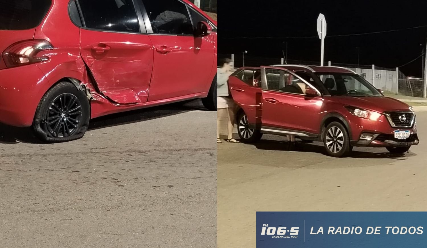Según imágenes enviadas por testigos a Cadena del Mar, el auto sufrió daños importantes en la puerta y rueda trasera del lado afectado. Afortunadamente, no se reportaron lesionados entre los ocupantes de ninguno de los dos vehículos.
