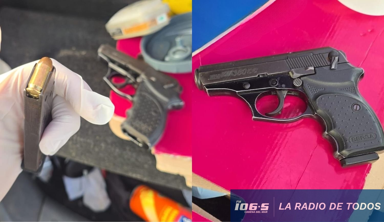 En el interior del vehículo viajaban tres masculinos mayores. Tras el registro corporal y la inspección del automóvil, los actuantes localizaron un arma de fuego con cargador, oculta en la tapa del baúl que separa el mismo del habitáculo. De inmediato se adoptaron las medidas de seguridad correspondientes y se procedió a la identificación de los ocupantes.