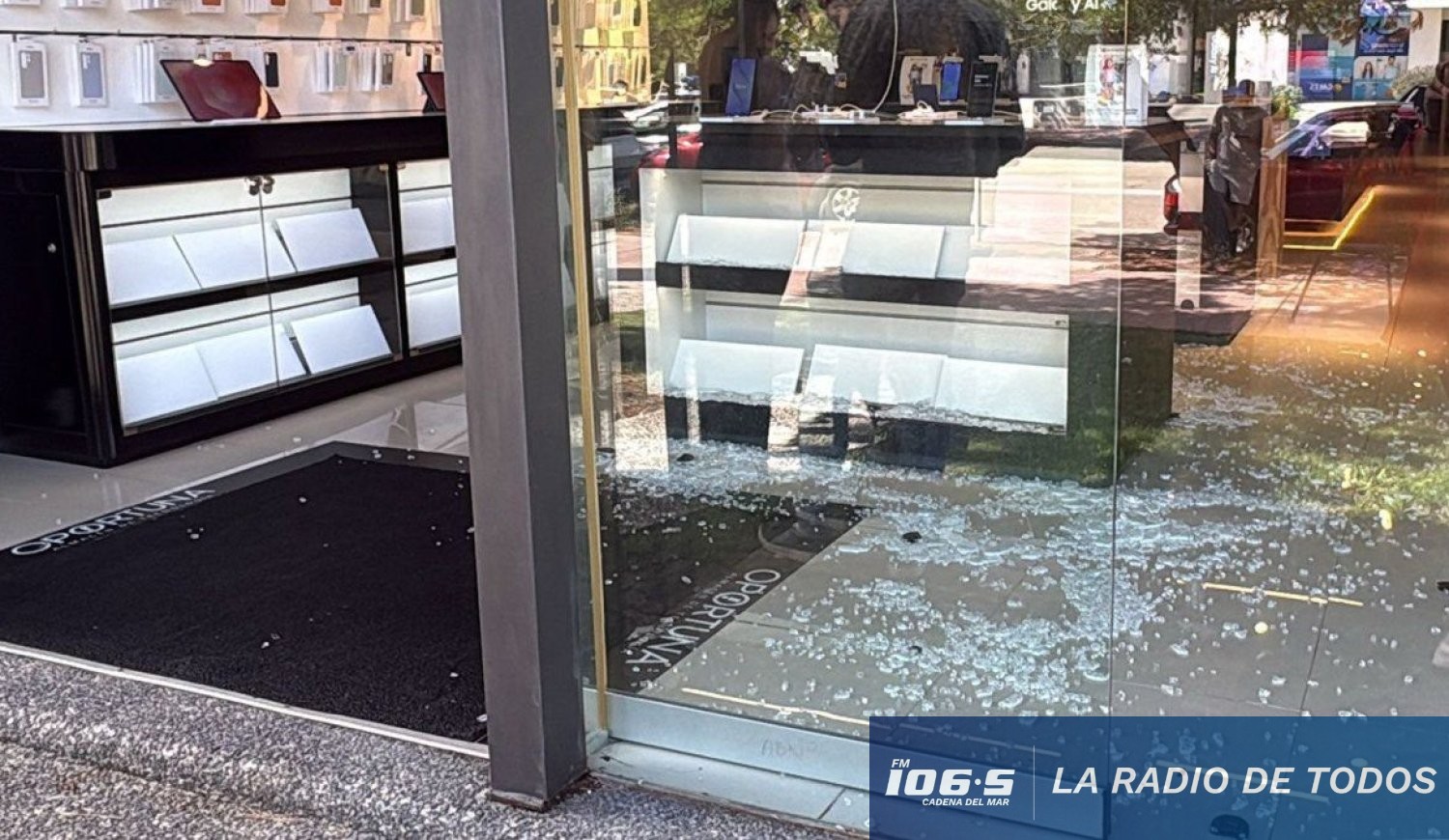 Una vez en el interior, utilizaron un martillo para destrozar las vitrinas de exhibición y apoderarse rápidamente de los dispositivos de última generación que se encontraban a la venta.