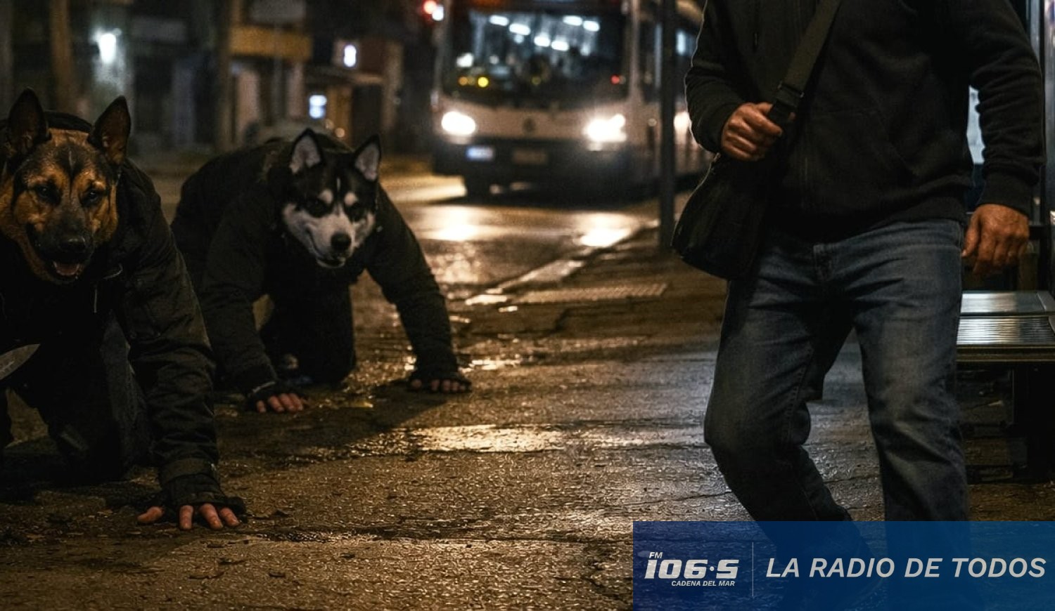 El insólito episodio ocurrió pasada la medianoche, en Montevideo. La víctima descendía de la línea de ómnibus número 427 cuando fue sorprendida por dos individuos con máscaras caninas que lo amenazaron con un arma blanca; tal cual lo difundieron los colegas de Telenoche -vía Canal 11 de Punta del Este-.