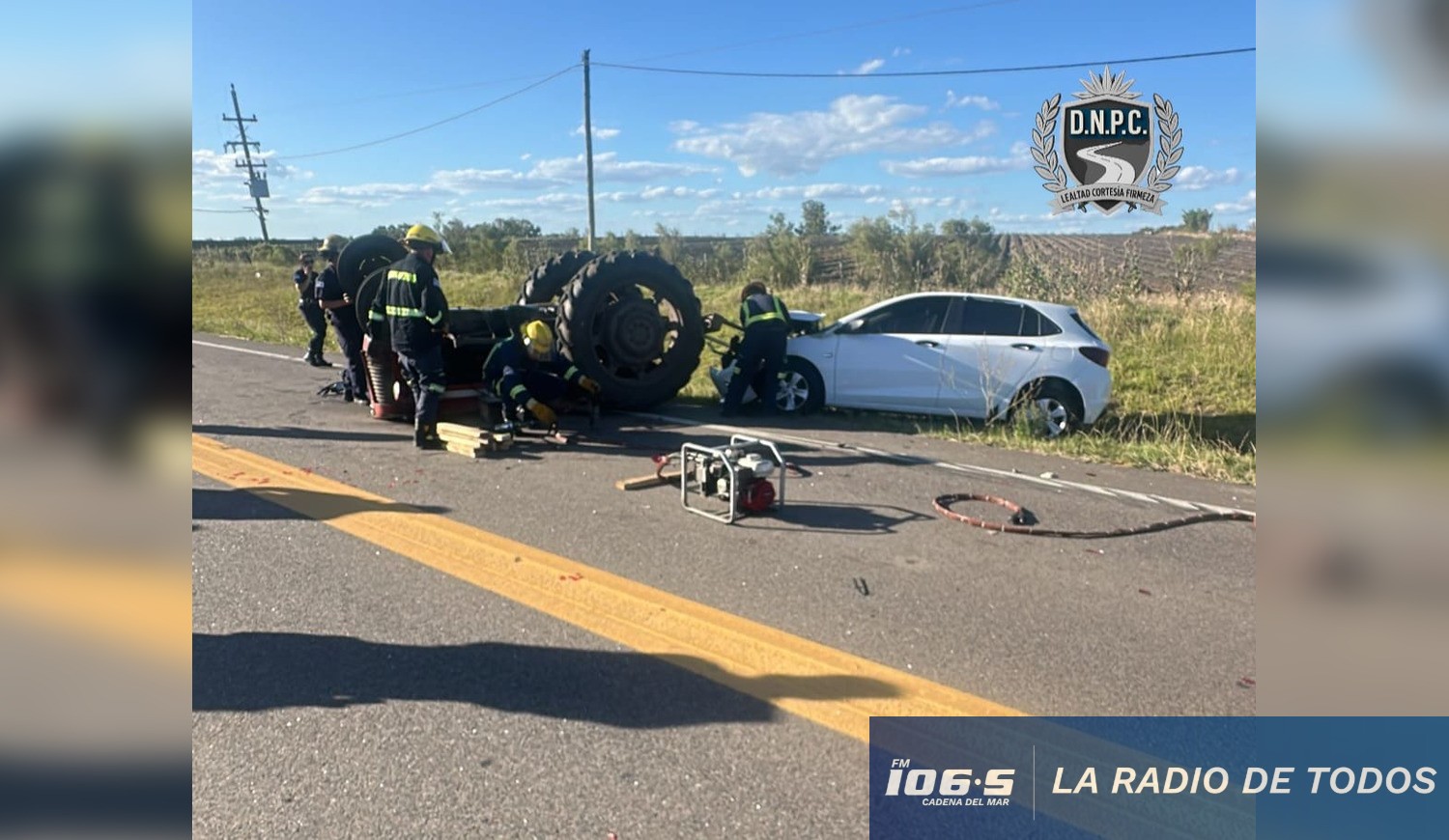Como consecuencia de la colisión, el tractor agrícola volcó y quedó en posición invertida sobre su único ocupante, un hombre de 58 años, quien falleció en el lugar de manera inmediata.