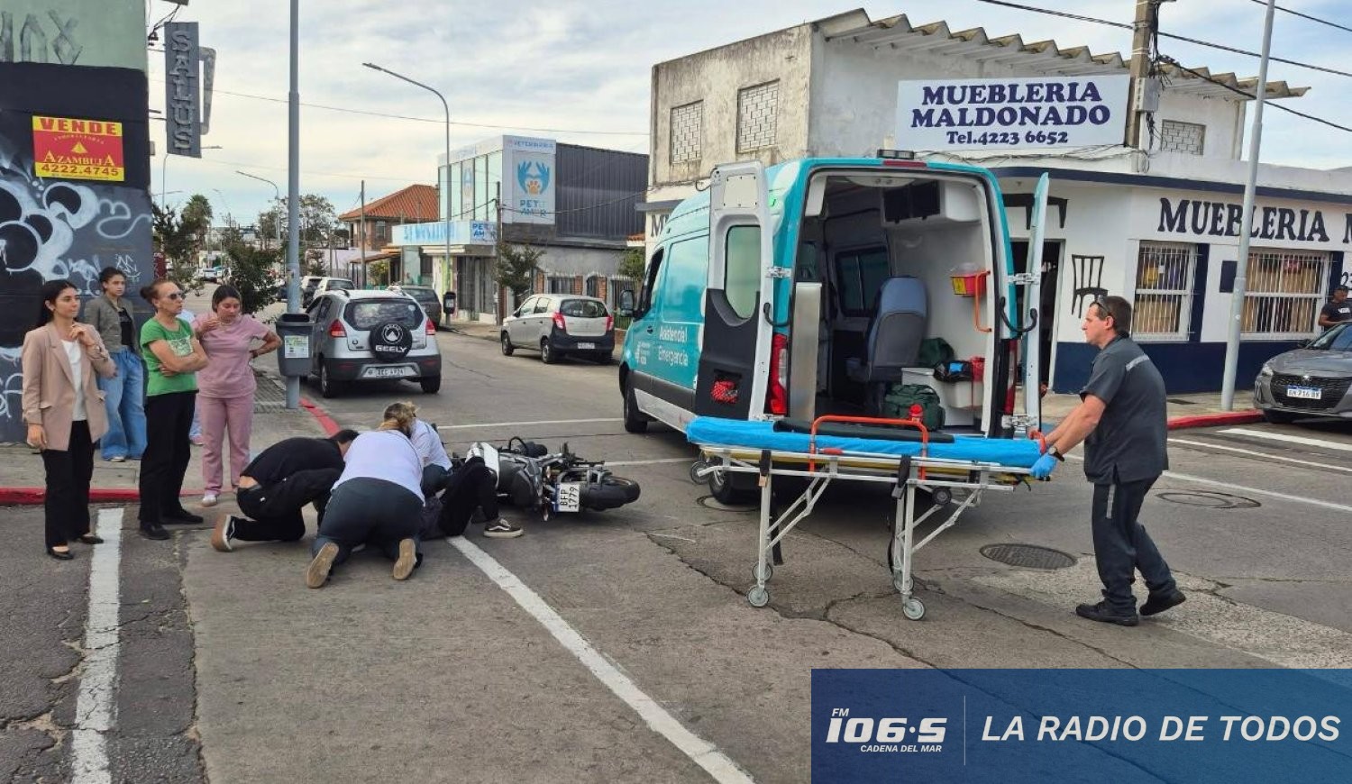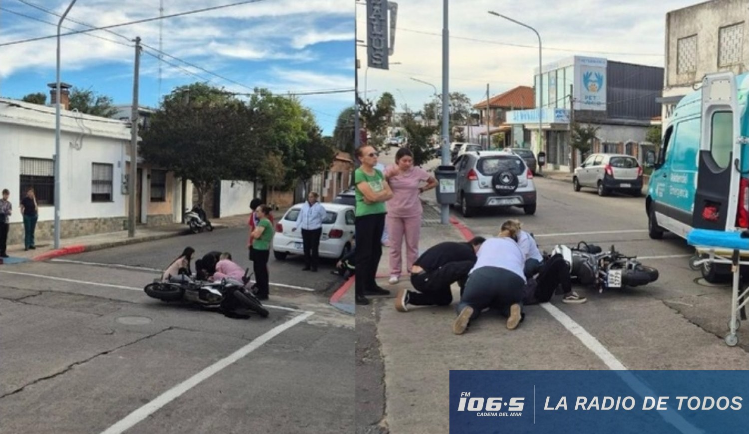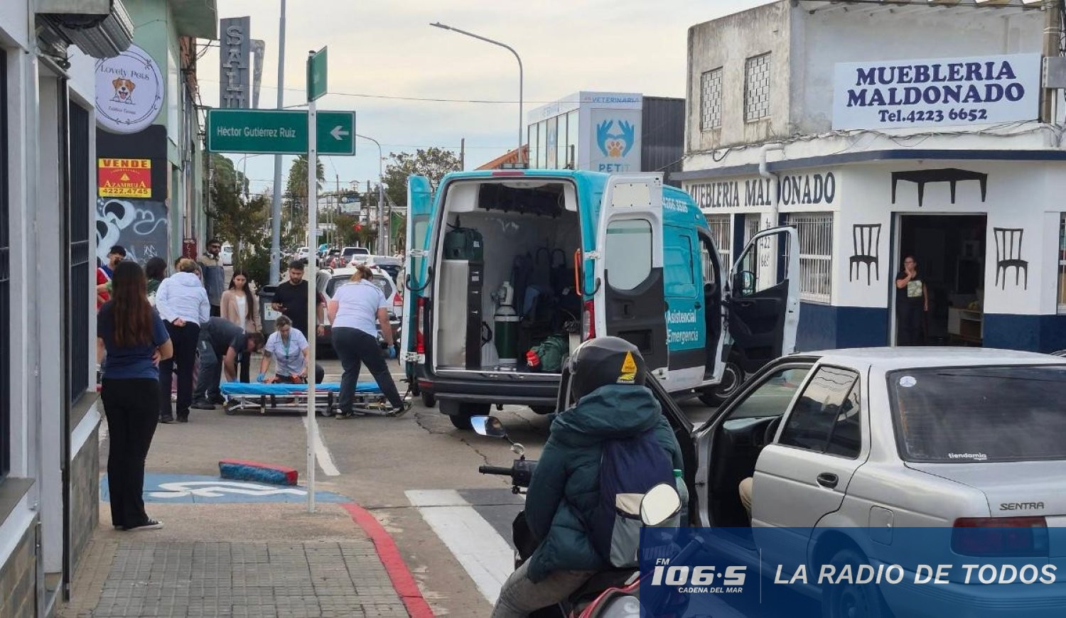 El incidente vial se produjo en la intersección de las calles Gutiérrez Ruiz y Sarandí durante la tarde de este jueves. Ambos involucrados recibieron asistencia médica en el lugar y debieron ser derivados a un centro asistencial para su evaluación.