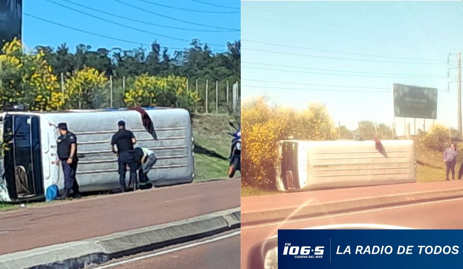 Un minibús que transportaba a un grupo de obreros volcó en la zona de Avenida Lussich, a pocos metros del radar de control de velocidad instalado en ese tramo; tal cual lo informó nuestro compañero Marcelo Umpierrez.