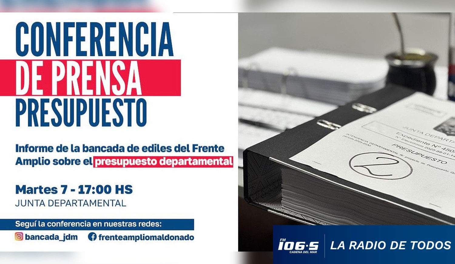 La bancada de ediles del Frente Amplio convoca a una conferencia de prensa este martes en la que dará a conocer su postura sobre la votación del Presupuesto Departamental.