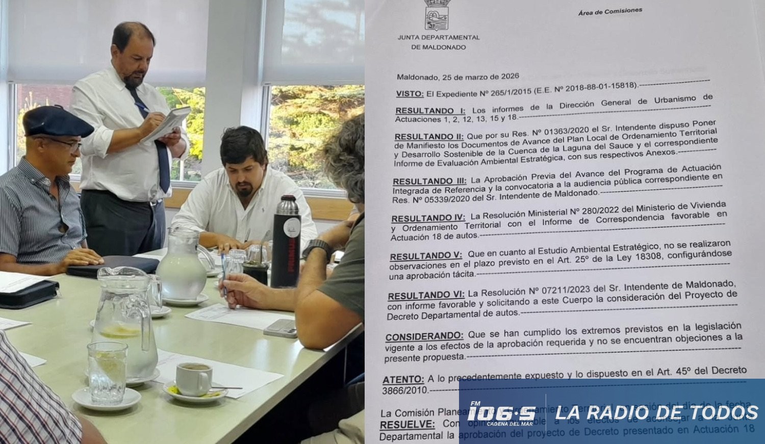 La Junta Departamental de Maldonado dio un nuevo paso en el tratamiento del Plan Local de Ordenamiento Territorial y Desarrollo Sostenible de la Cuenca de la Laguna del Sauce, luego de que la Comisión de Planeamiento y Ordenamiento Territorial emitiera opinión favorable al expediente.
